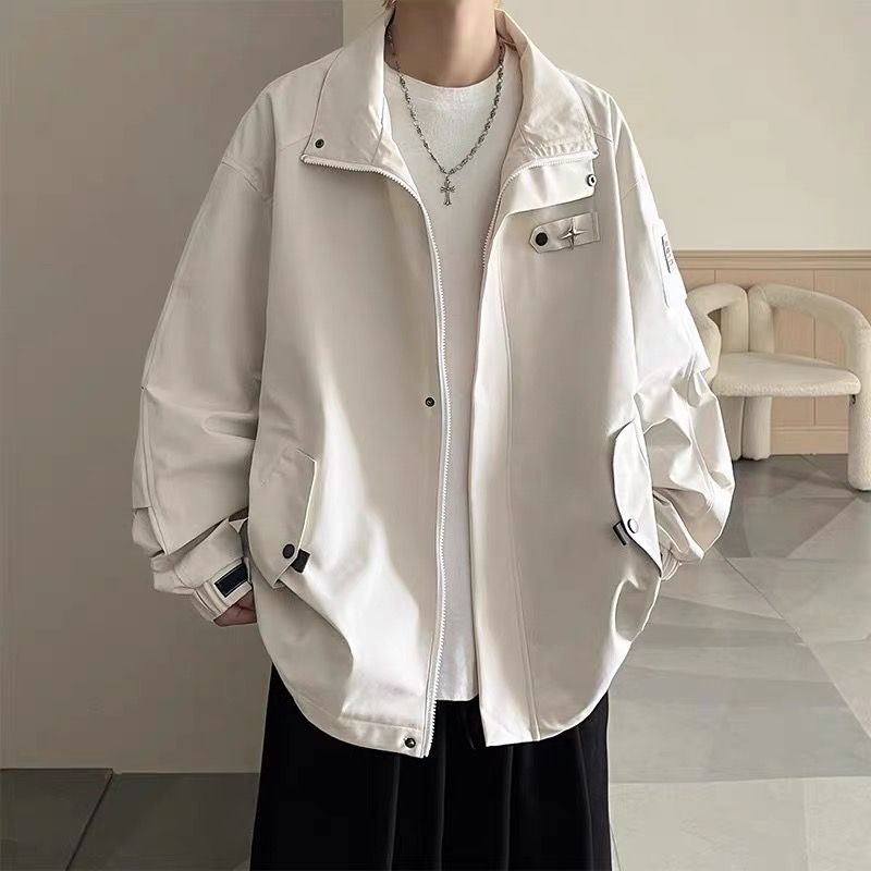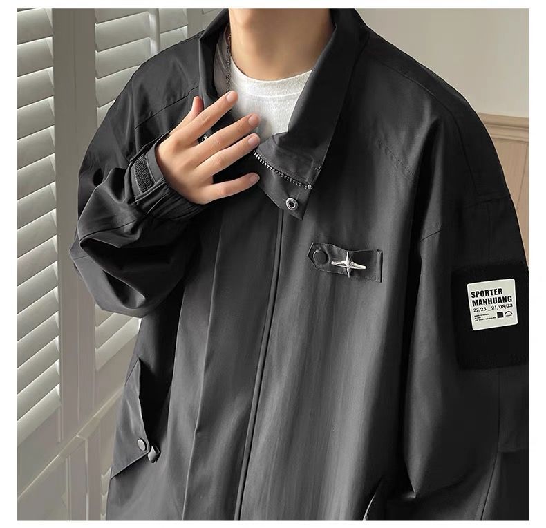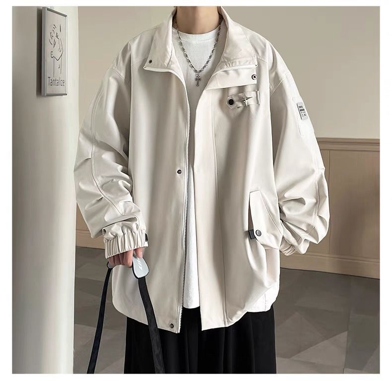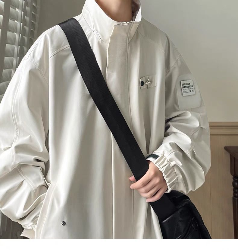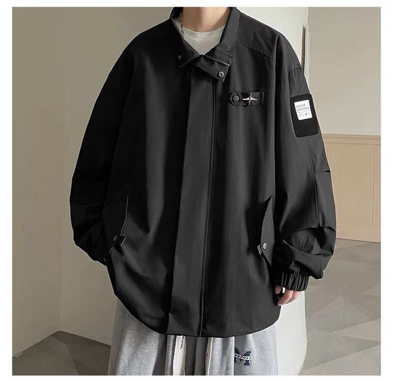 미국식 재킷 남자 2024 년 새로운 봄과 가을 유행 브랜드 비품 잘 생긴 충전 옷 소년 옷깃 폭격기 재킷스토어 가기