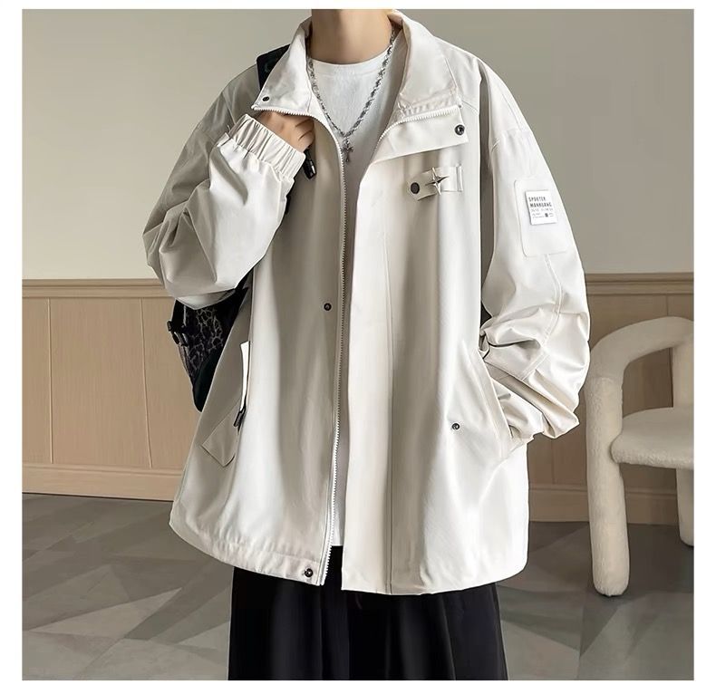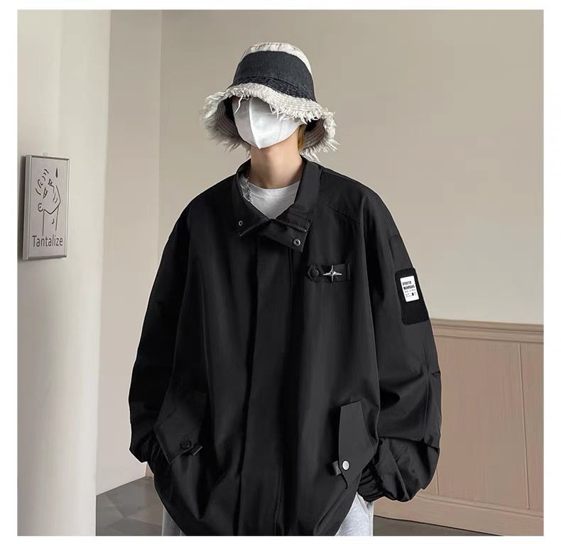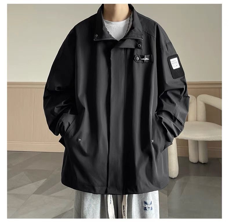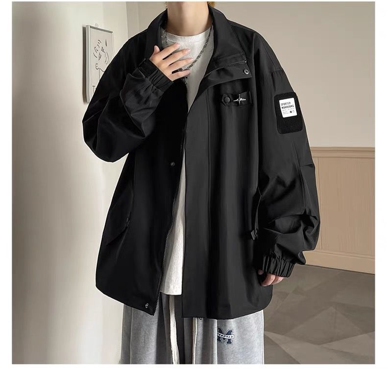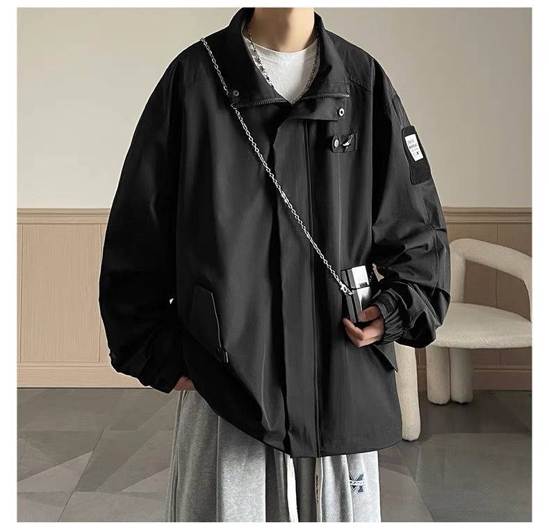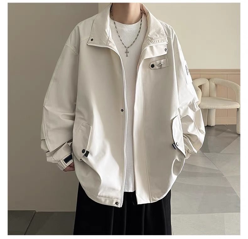 미국식 재킷 남자 2024 년 새로운 봄과 가을 유행 브랜드 비품 잘 생긴 충전 옷 소년 옷깃 폭격기 재킷스토어 가기