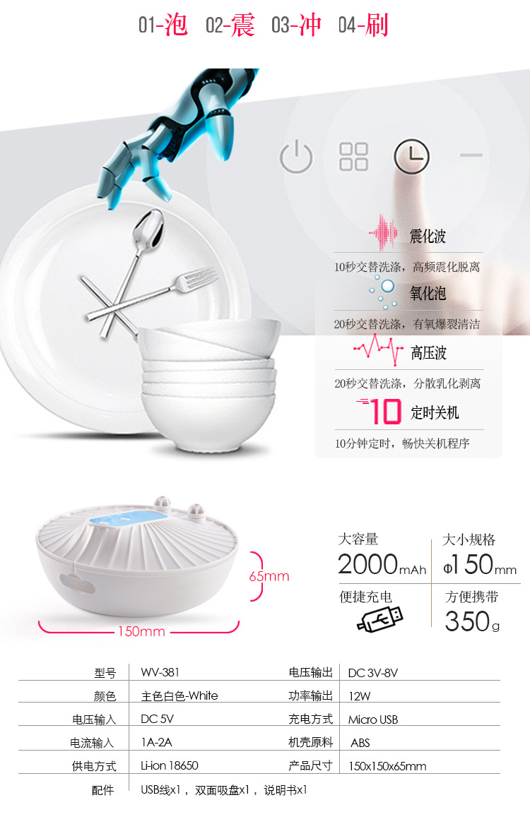 국경 간 초지진파 식기 세척기 가정용 소형 무선 전기 고압 파 물 스프레이 설치없는 과일 및 야채 와셔스토어 가기