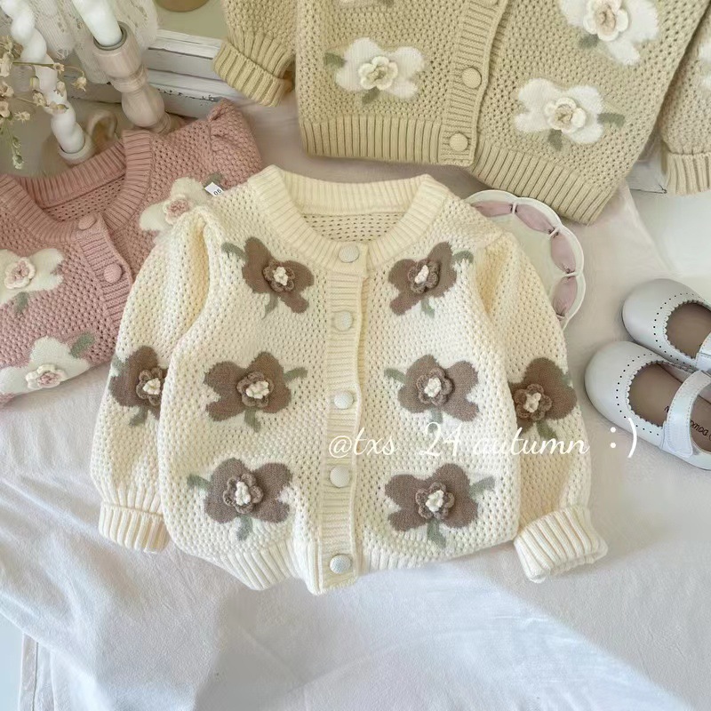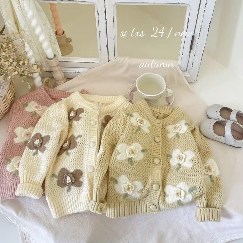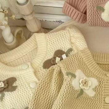 소녀 2024 새로운 스웨터 카디건 수제 꽃 유행 서양식 어린이 가을 의상 어린이 니트 자켓스토어 가기