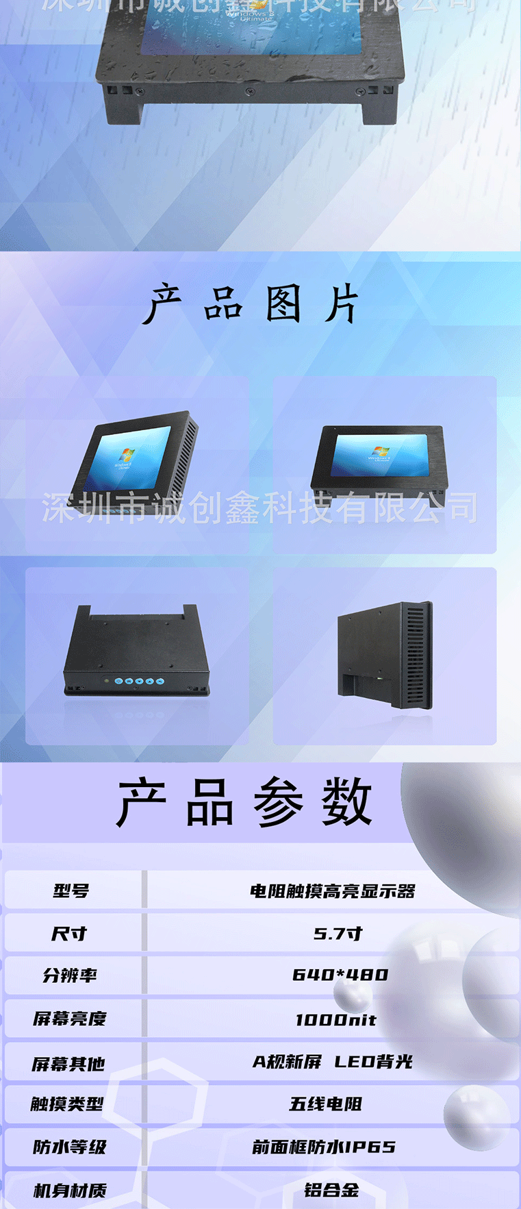 5.7inch 산업용 제어 디스플레이 휴대용 저항성 터치 전면 쉘 IP65 방수 방진 알루미늄 합금 태블릿