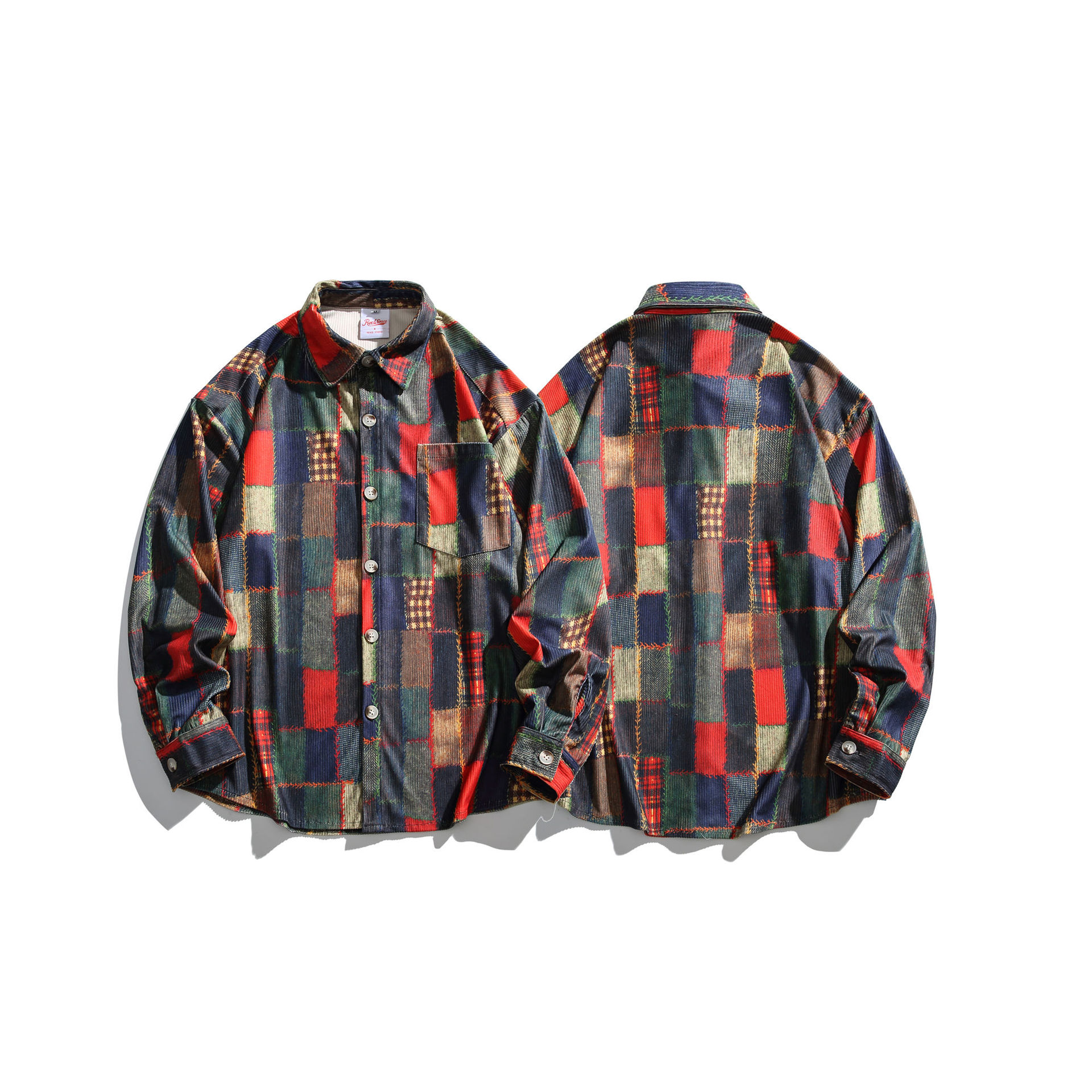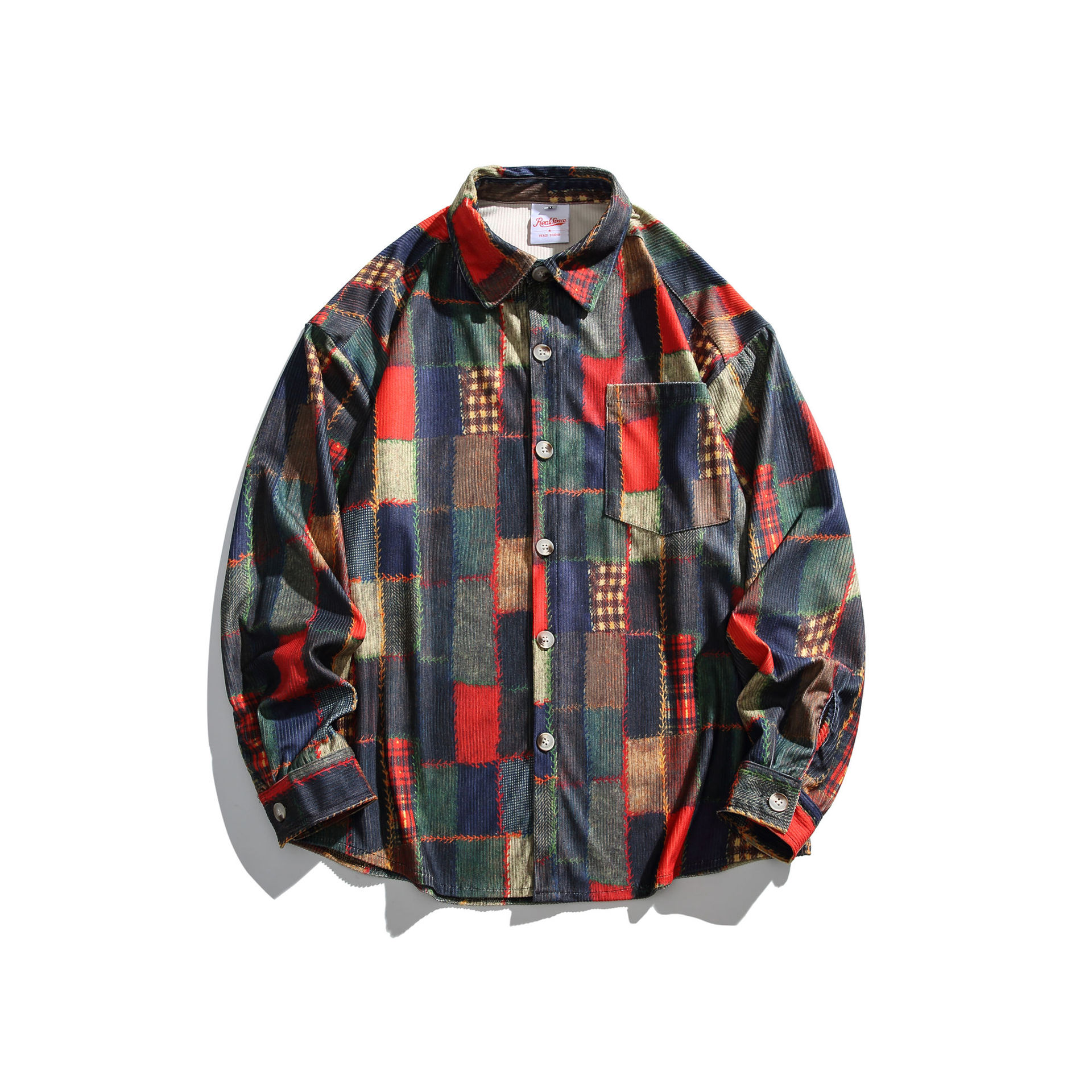 2024 가을 색상 일치 원래 셔츠 틈새 높은 거리 예술적 분위기 셔츠 코트 스타일 복고풍 남성 의류