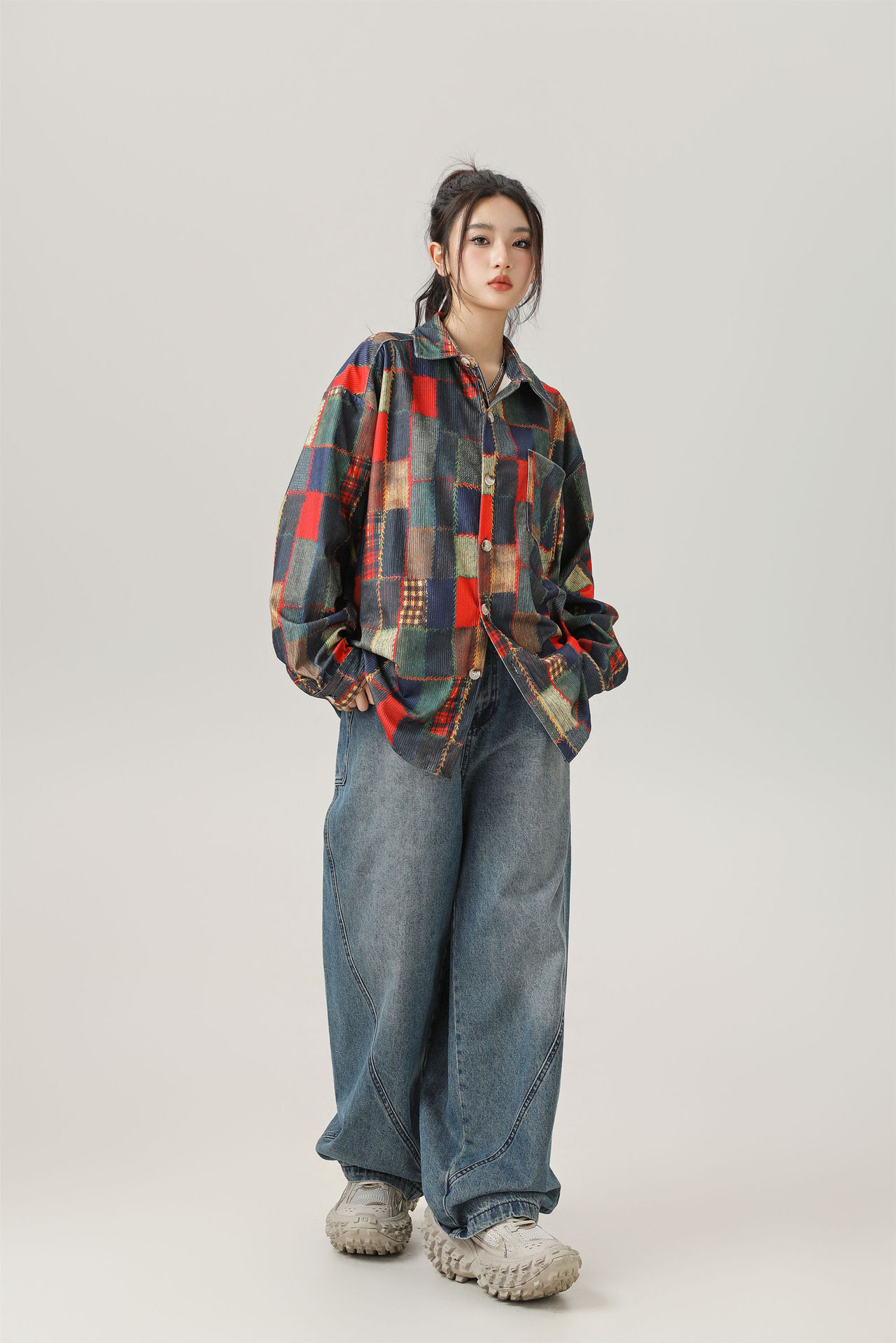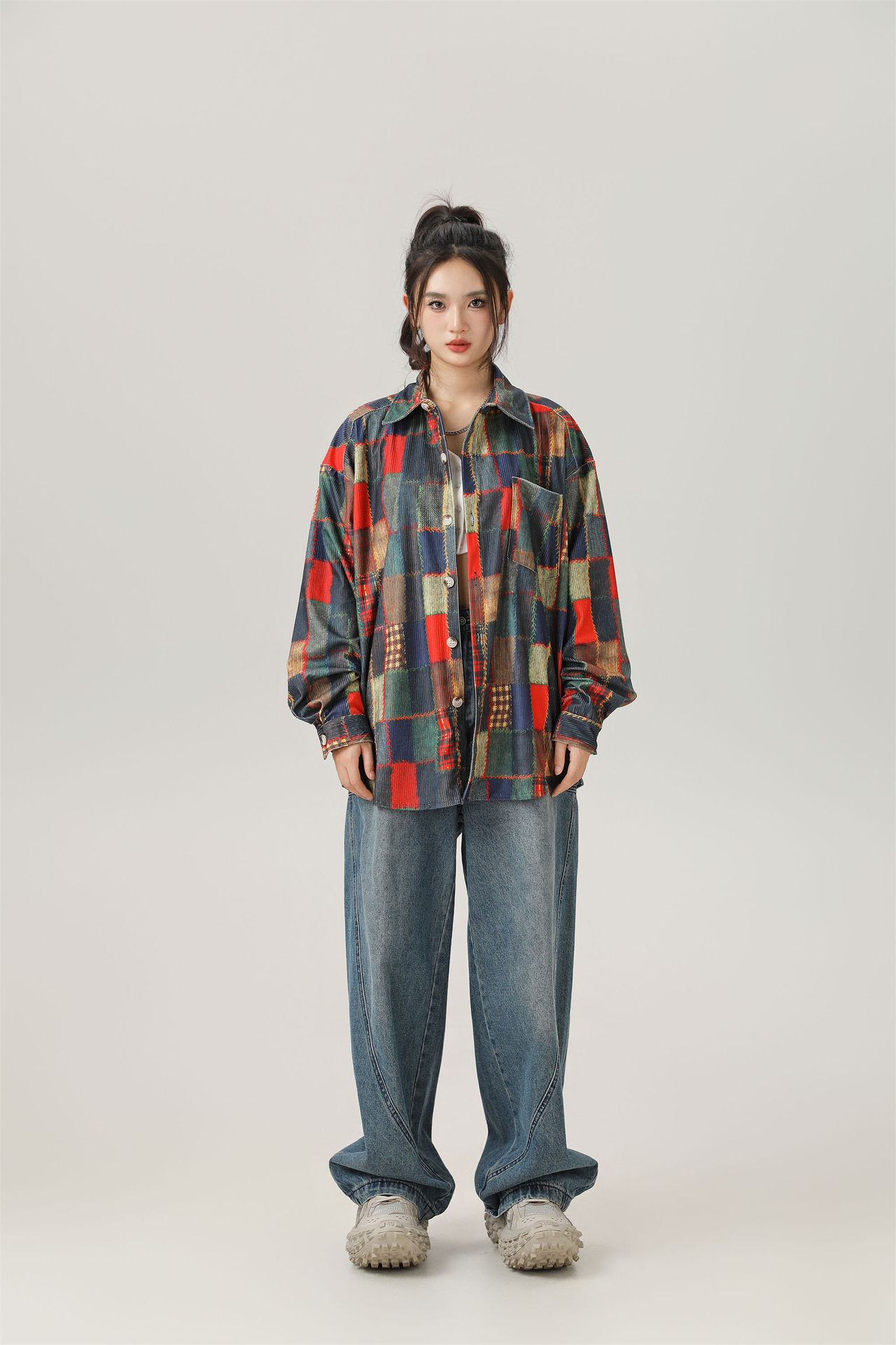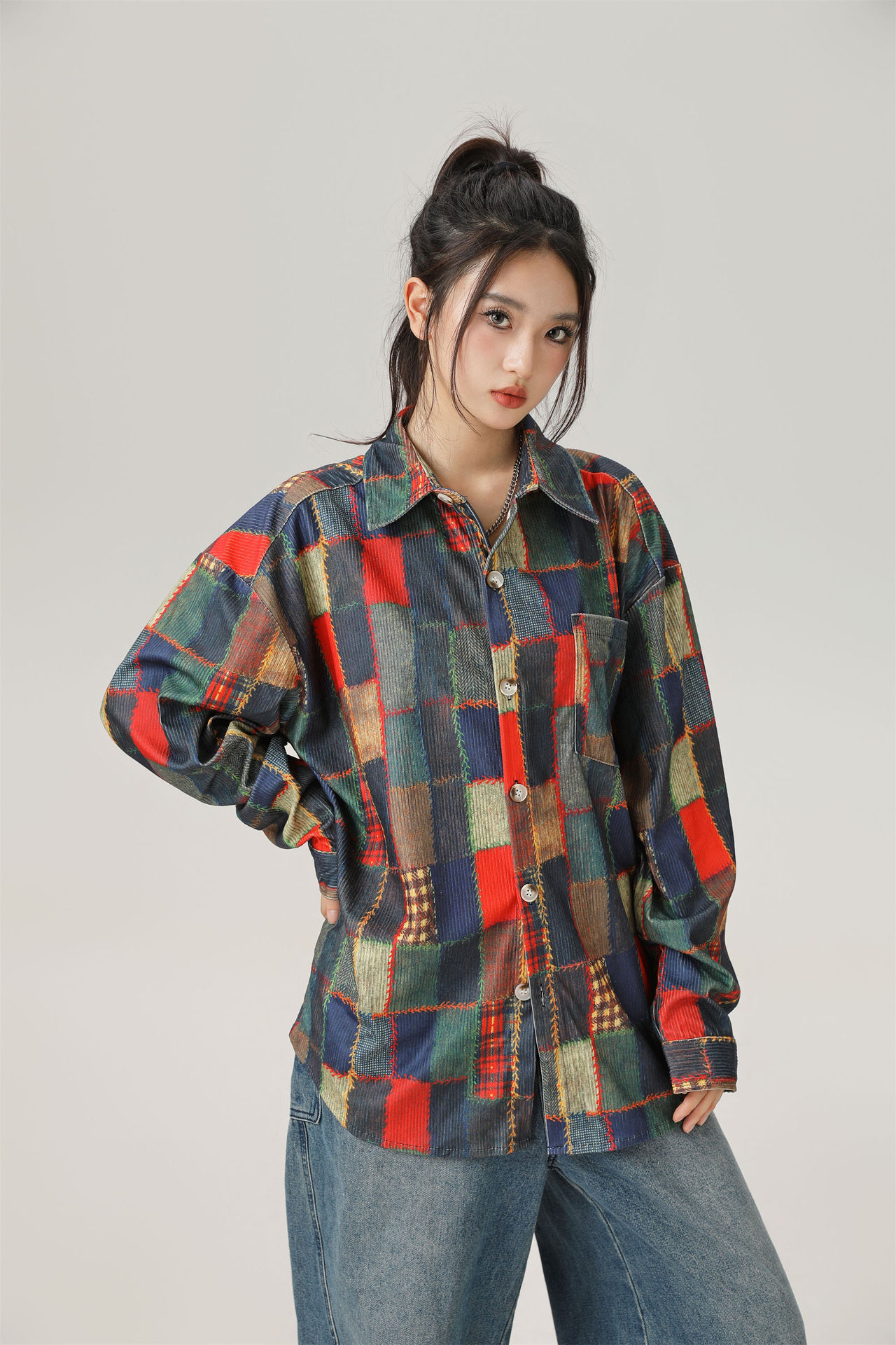 2024 가을 색상 일치 원래 셔츠 틈새 높은 거리 예술적 분위기 셔츠 코트 스타일 복고풍 남성 의류스토어 가기