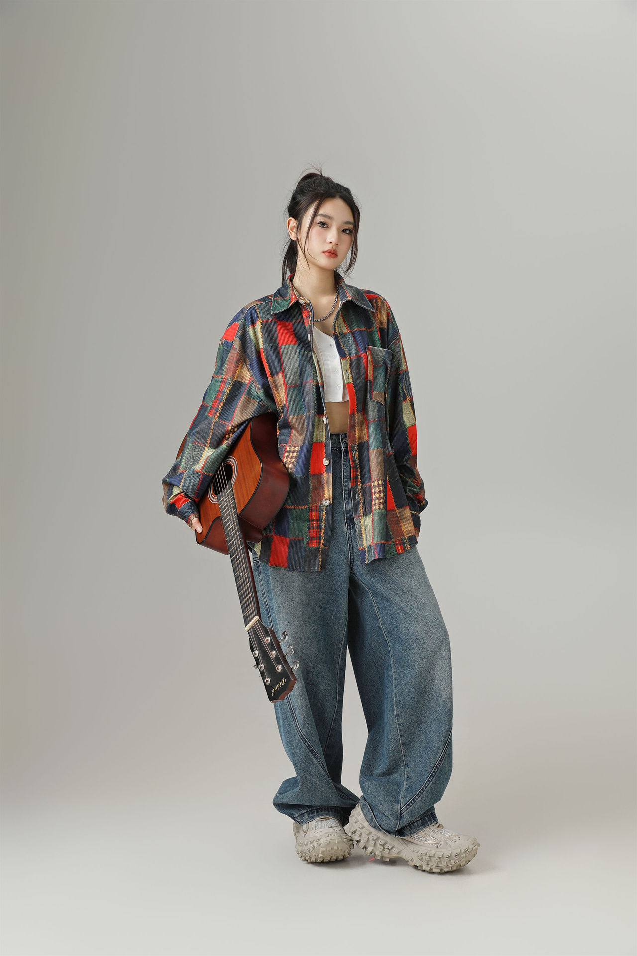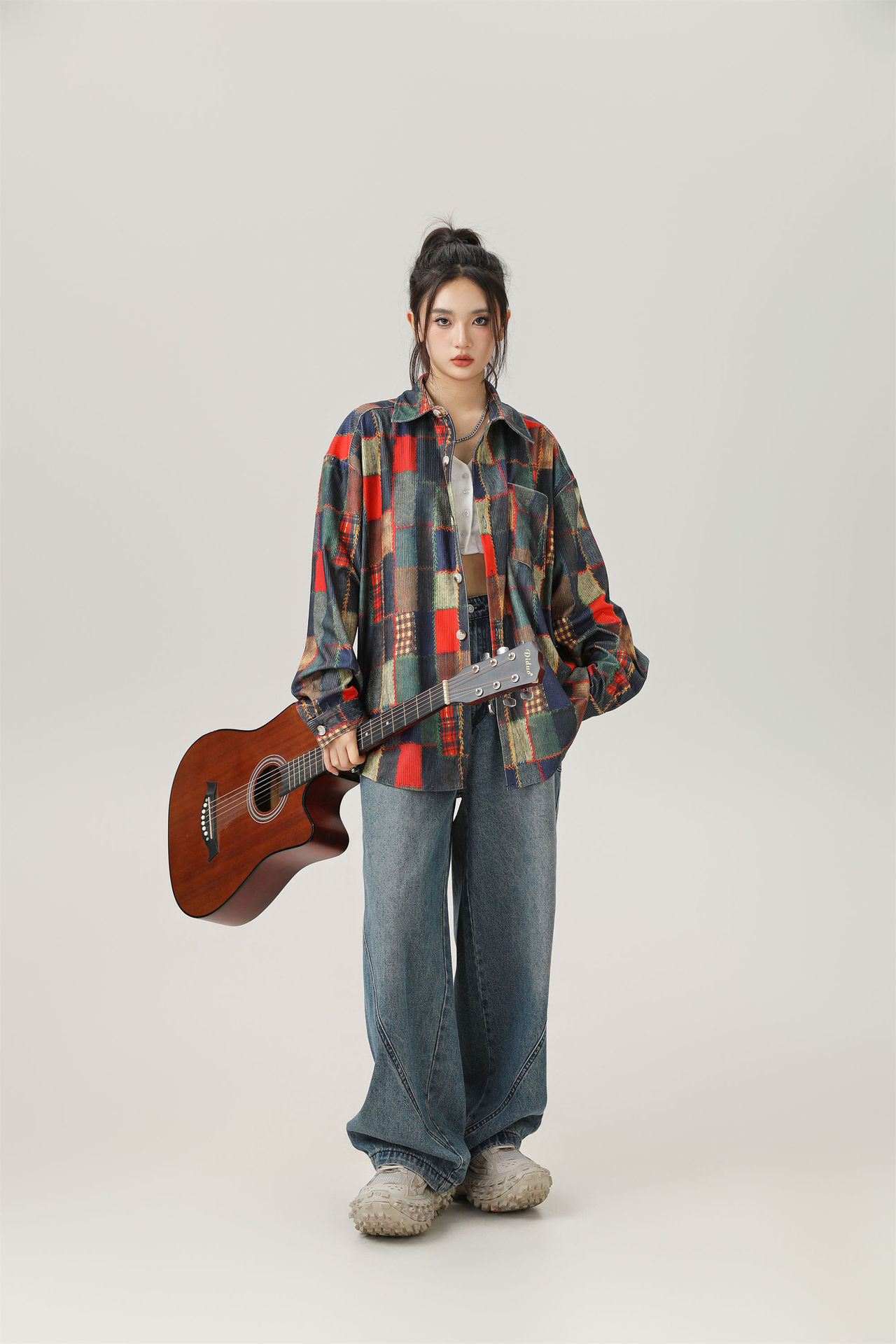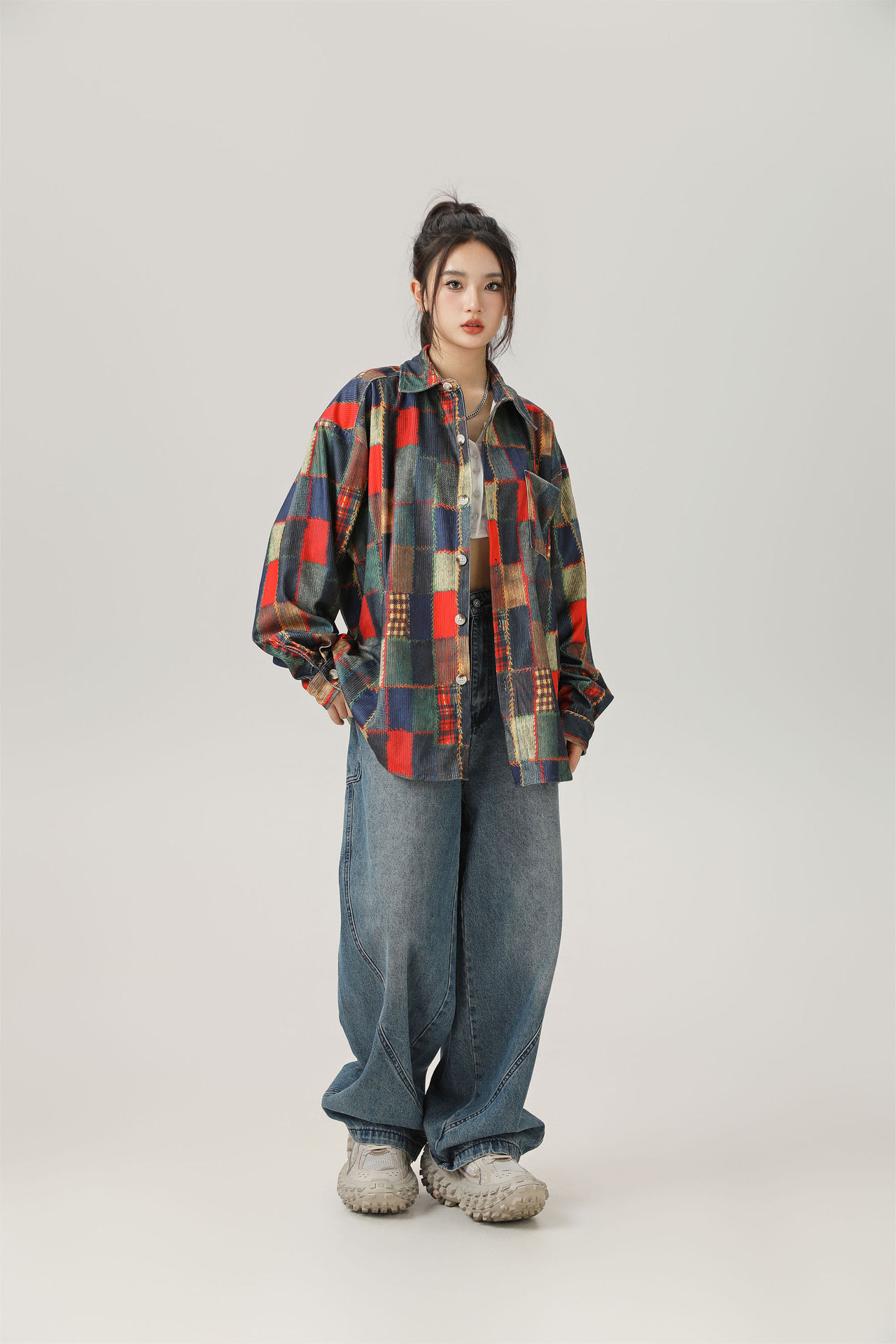 2024 가을 색상 일치 원래 셔츠 틈새 높은 거리 예술적 분위기 셔츠 코트 스타일 복고풍 남성 의류스토어 가기