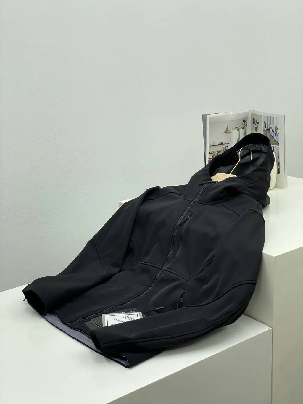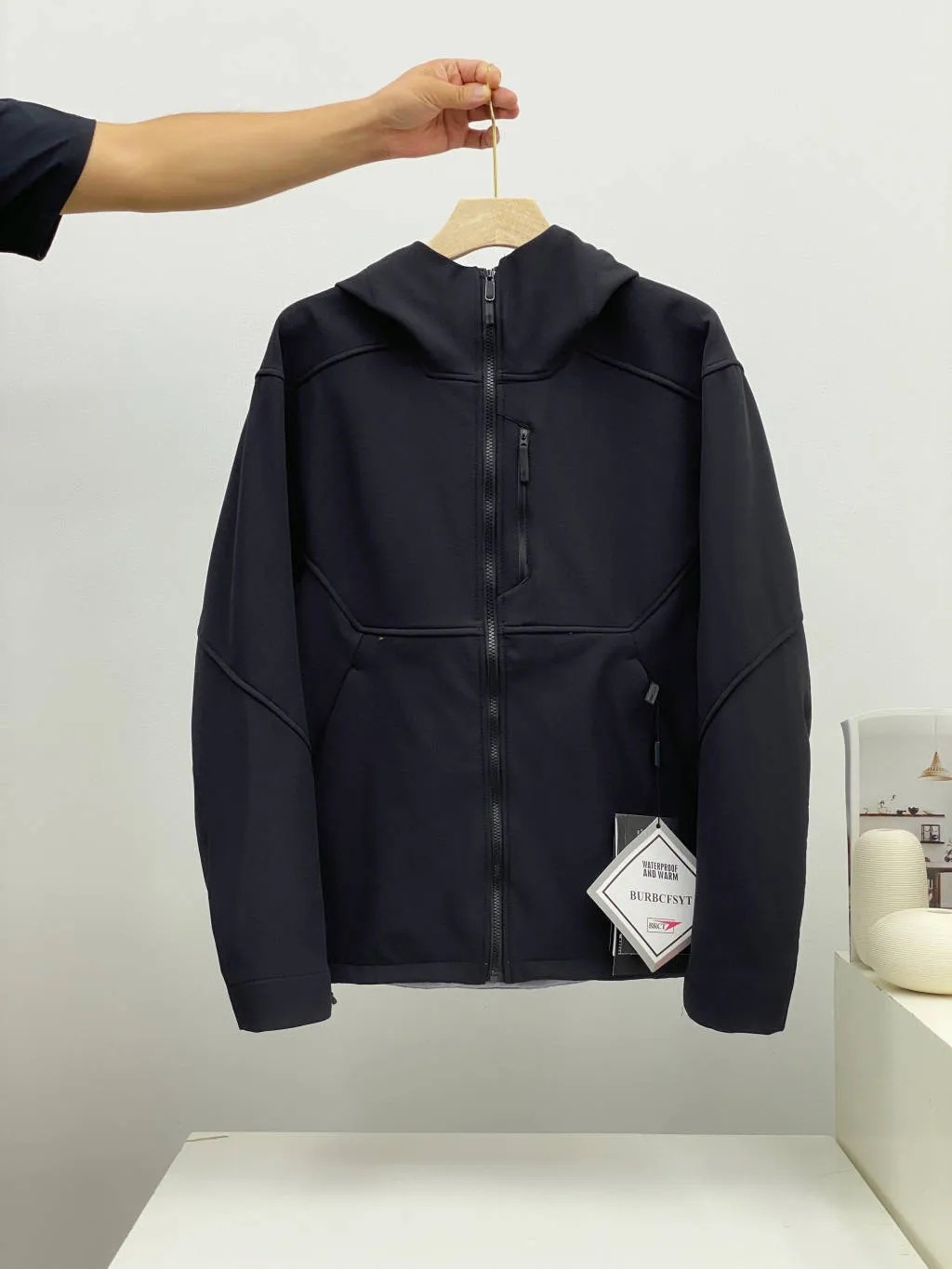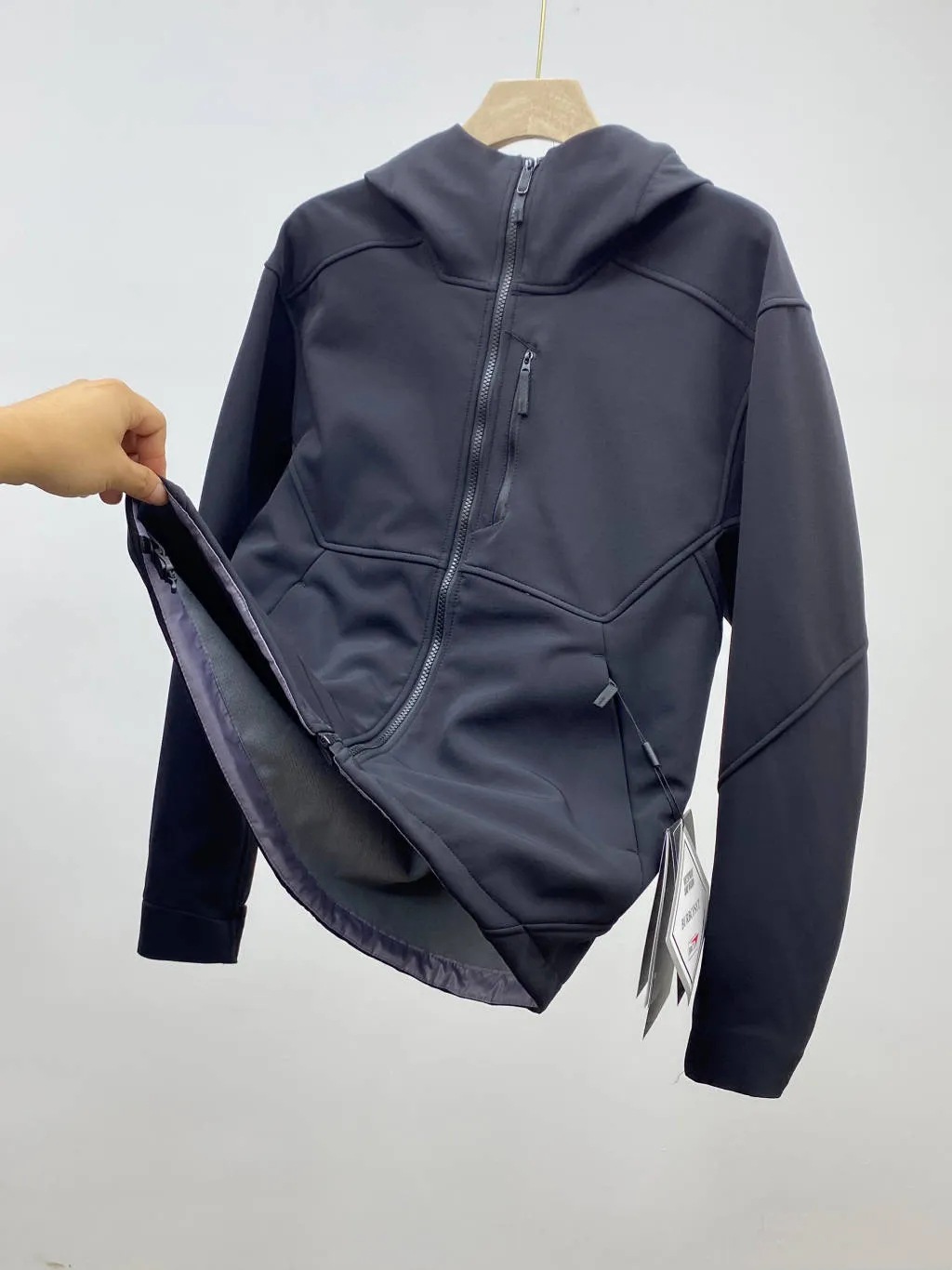 胸前拉链口袋设计,两侧斜插口袋装饰门禁拉链闭合,顺滑耐用,繁琐的拼接工艺加上的做工!