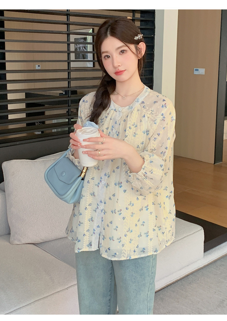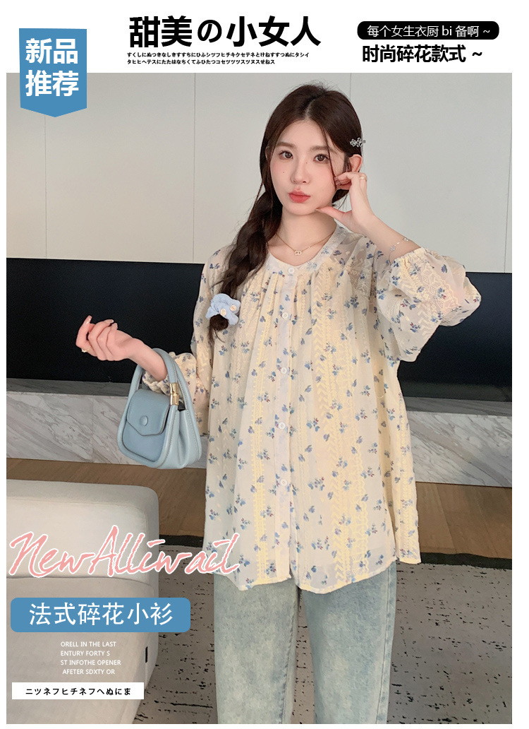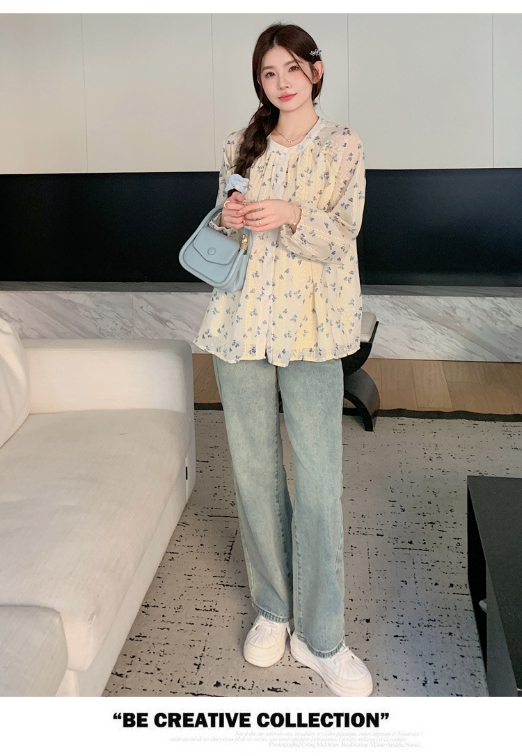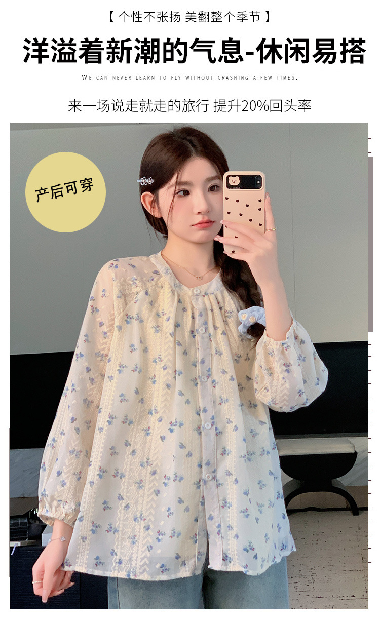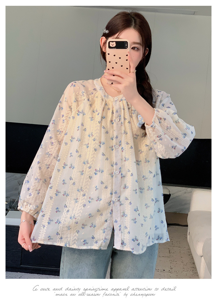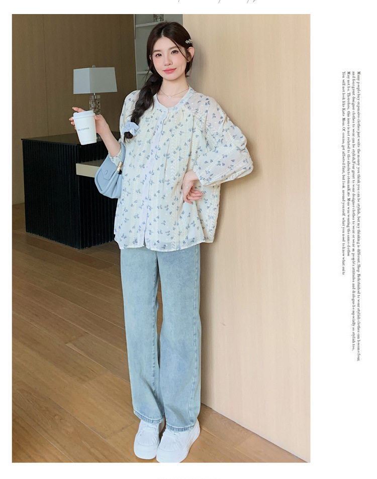 2024 년 새로운 가을과 겨울 임산부 패션 한국식 외모 슬리밍 자카드 주름 달콤한 꽃 인형 탑스토어 가기