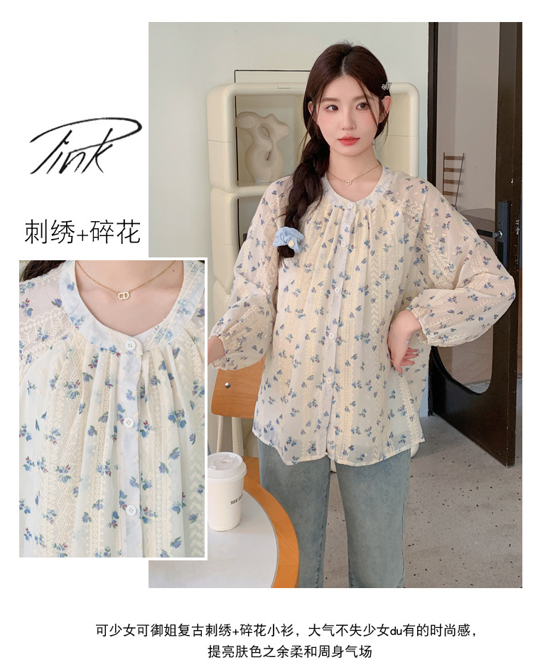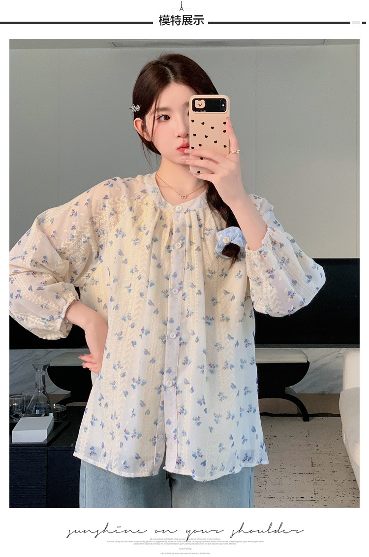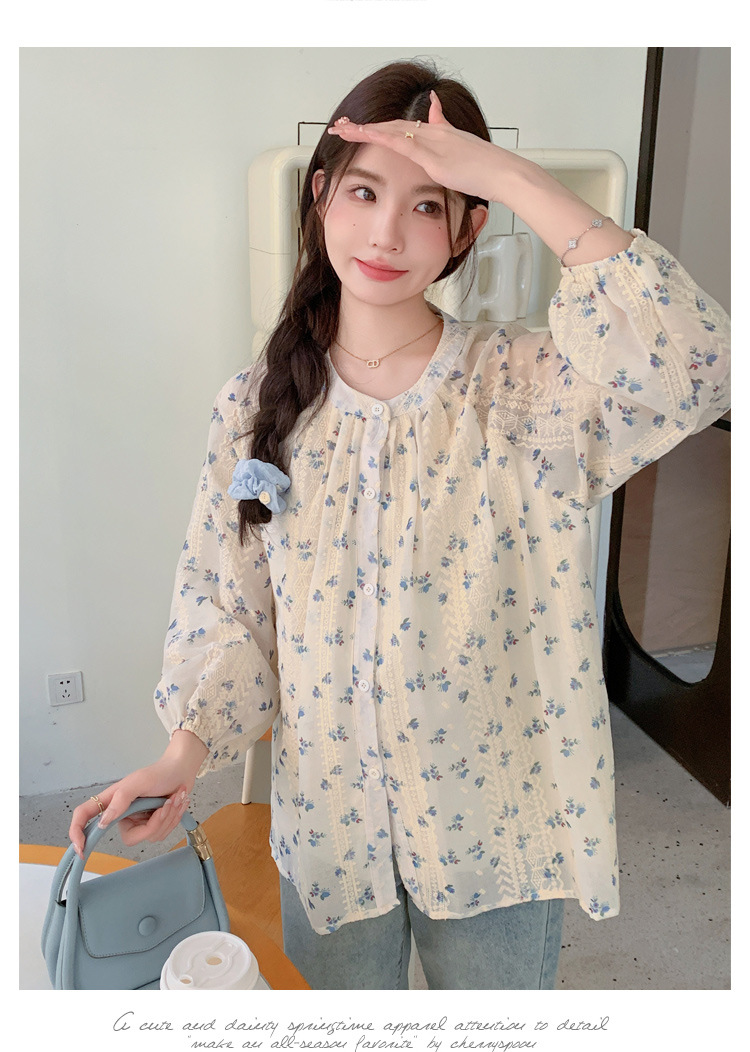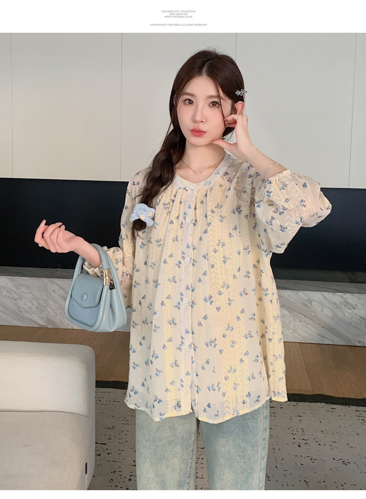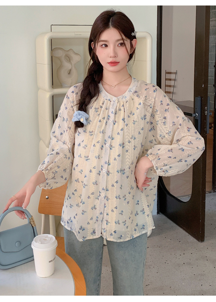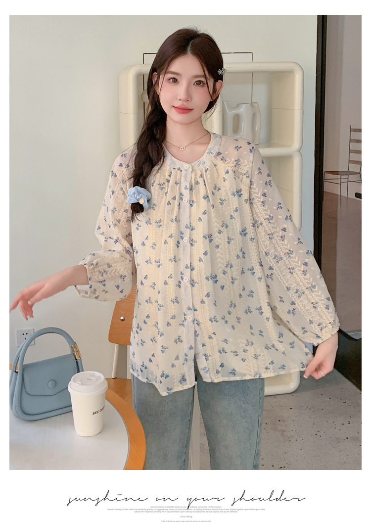 2024 년 새로운 가을과 겨울 임산부 패션 한국식 외모 슬리밍 자카드 주름 달콤한 꽃 인형 탑스토어 가기