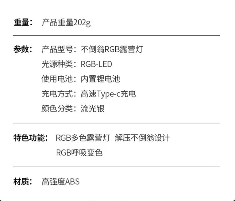 새로운 텀블러 캠핑 램프 8 종류의 빛 대기 램프 감압 아티팩트 유형-C 충전 테이블 램프 야간 조명