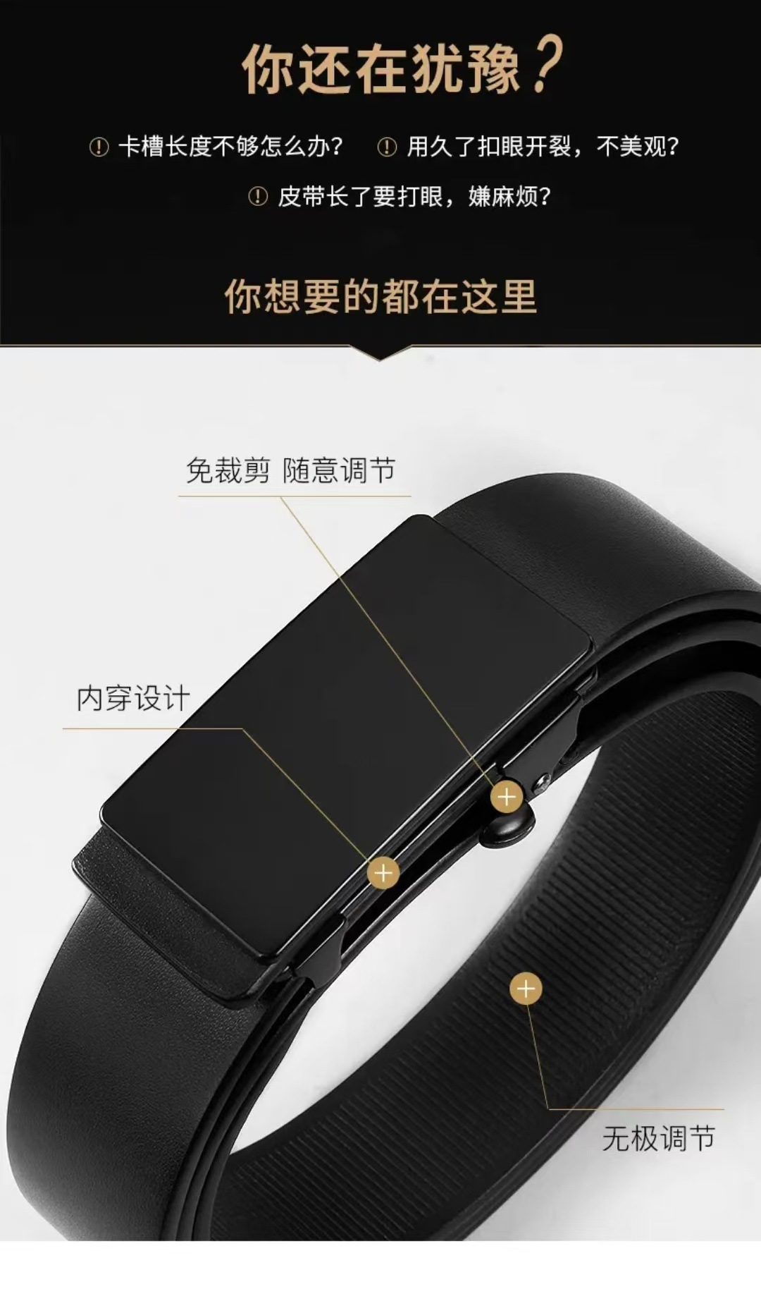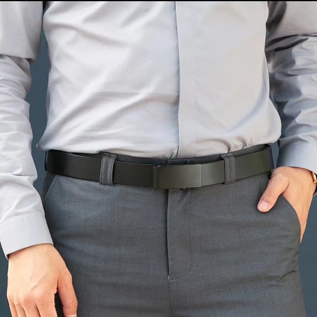 폴의 신상품 천연 가죽 무타공 순소가죽 자동 버클 이너웨어 벨트 젊은층 트렌디 비즈니스 벨트