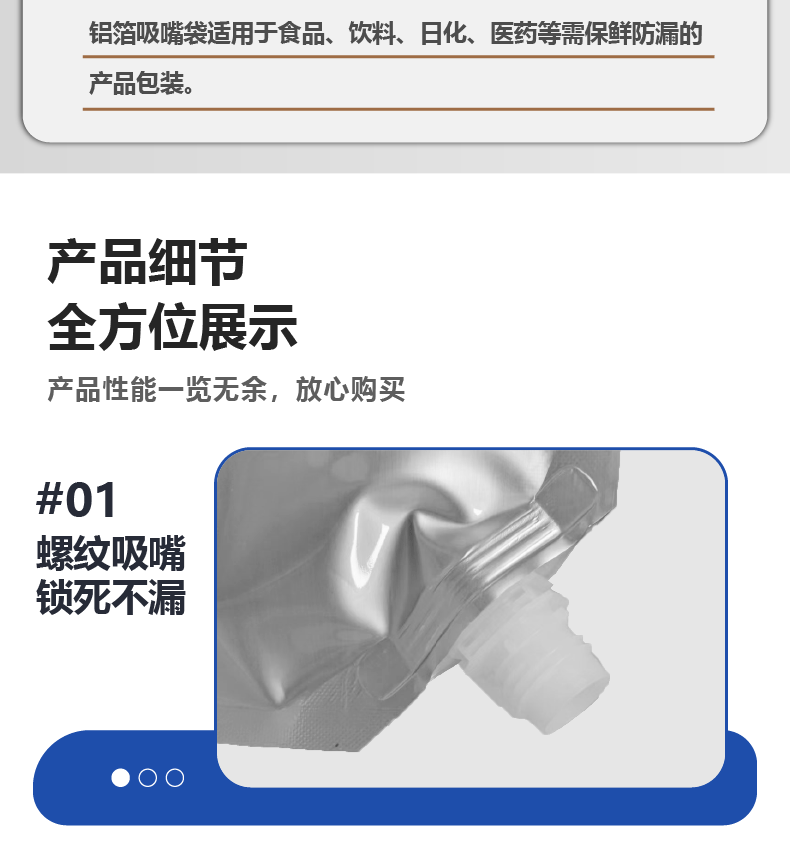 알루미늄 호일 흡입구가 있는 주머니, 주스, 두유, 젤리, 곡물 보관용 자립형 흡입구 주머니스토어 가기