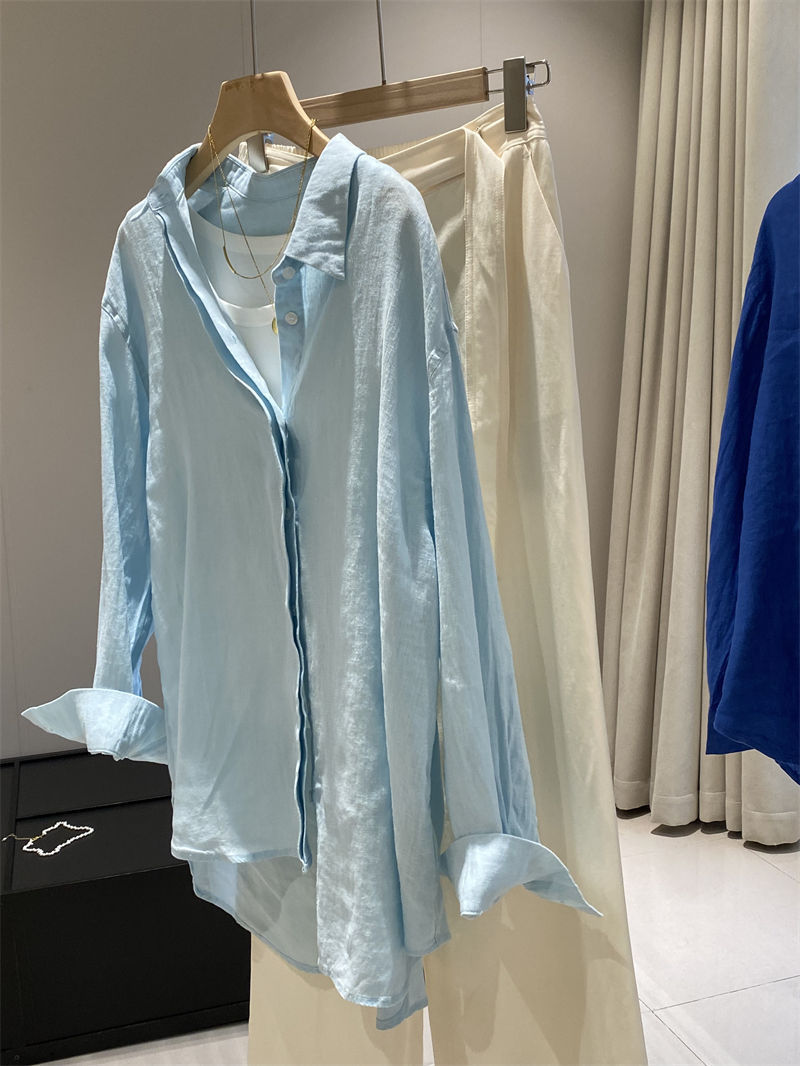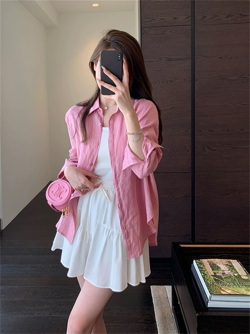 프렌치 스타일 화이트 린넨 셔츠 여성용 봄 여름 얇은 루즈핏 고급스러운 올드머니 스타일 하이엔드 면 린넨 셔츠 자외선 차단 상의