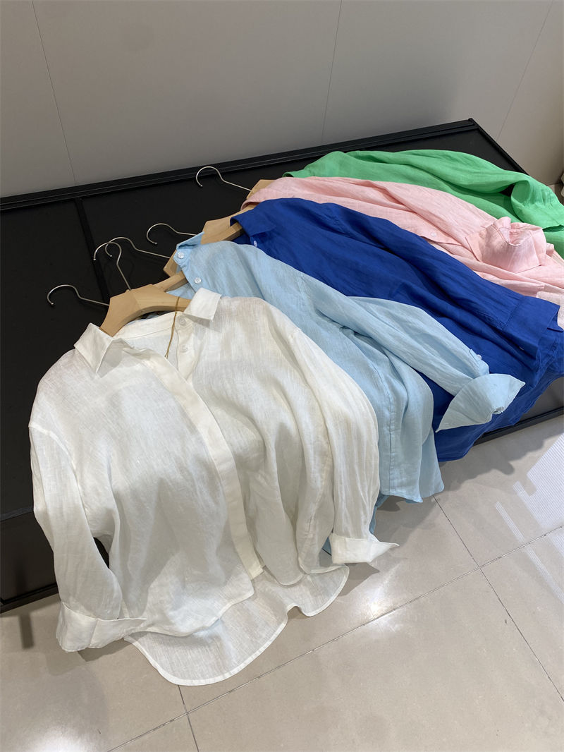 프렌치 스타일 화이트 린넨 셔츠 여성용 봄 여름 얇은 루즈핏 고급스러운 올드머니 스타일 하이엔드 면 린넨 셔츠 자외선 차단 상의스토어 가기