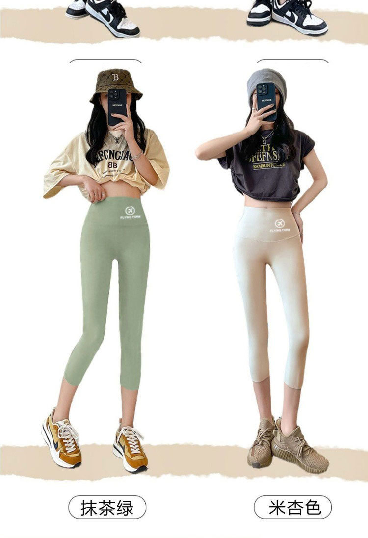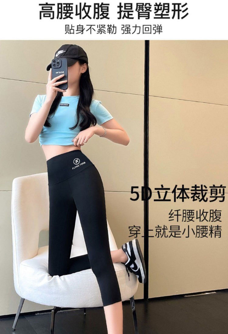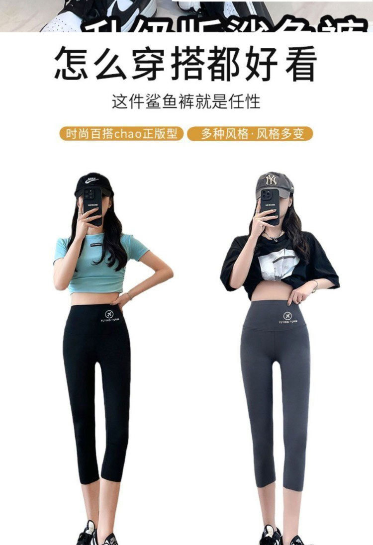 여성용 여름 얇은 외부 착용 높은 허리 플러스 사이즈 승마 요가 바지 7 점 항공기 상어 바지