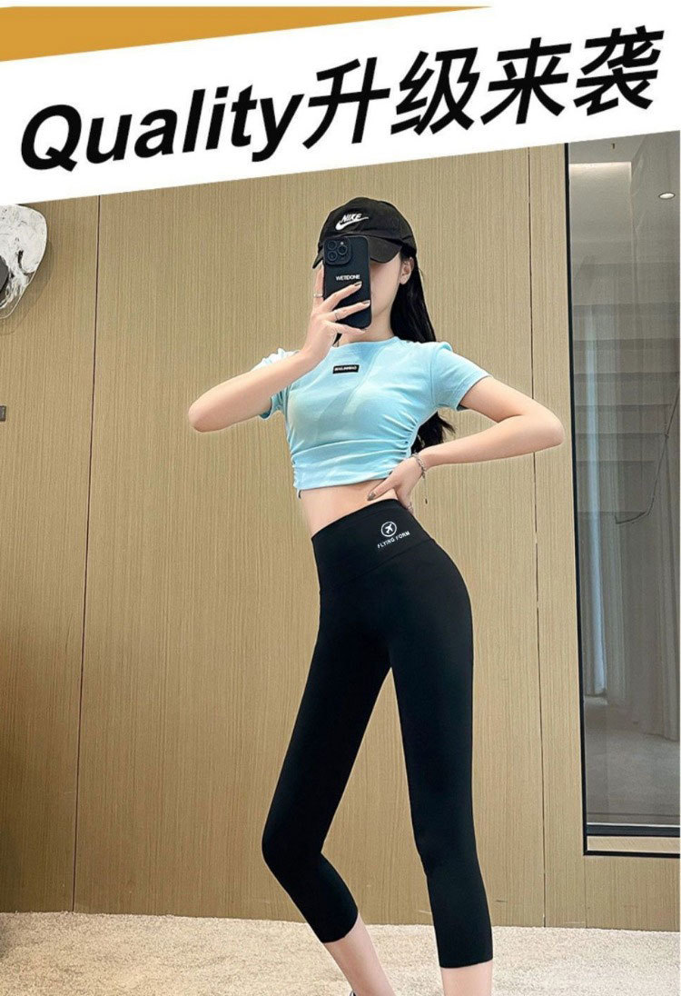 여성용 여름 얇은 외부 착용 높은 허리 플러스 사이즈 승마 요가 바지 7 점 항공기 상어 바지스토어 가기