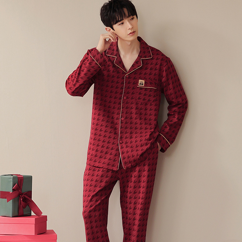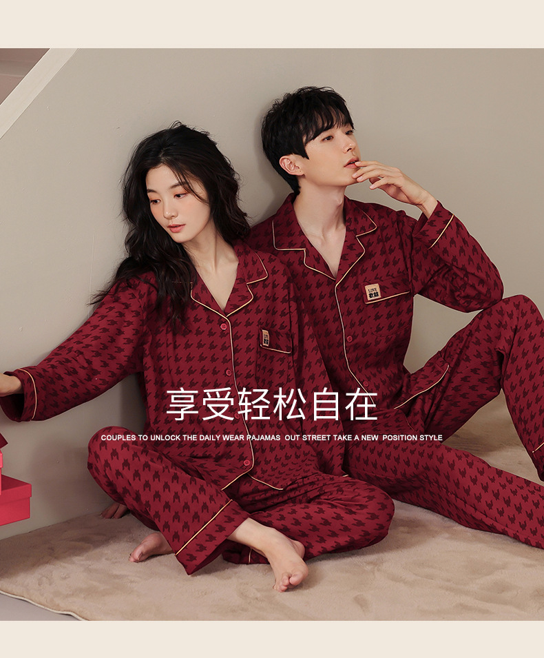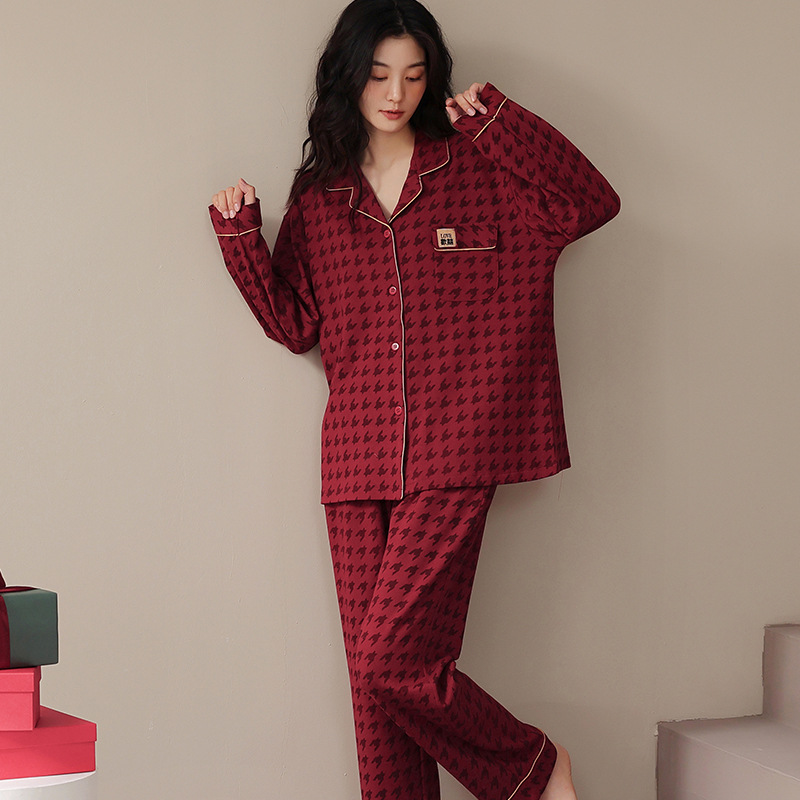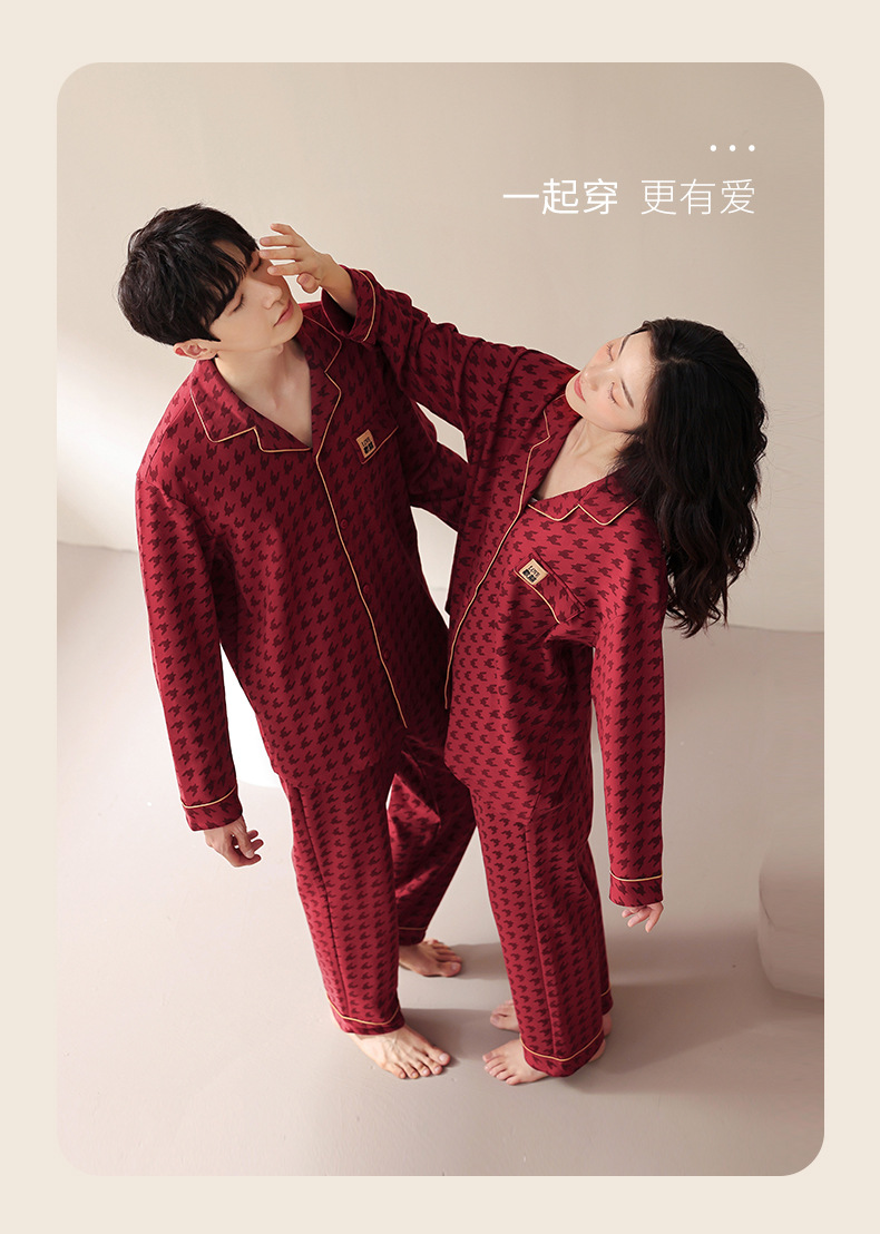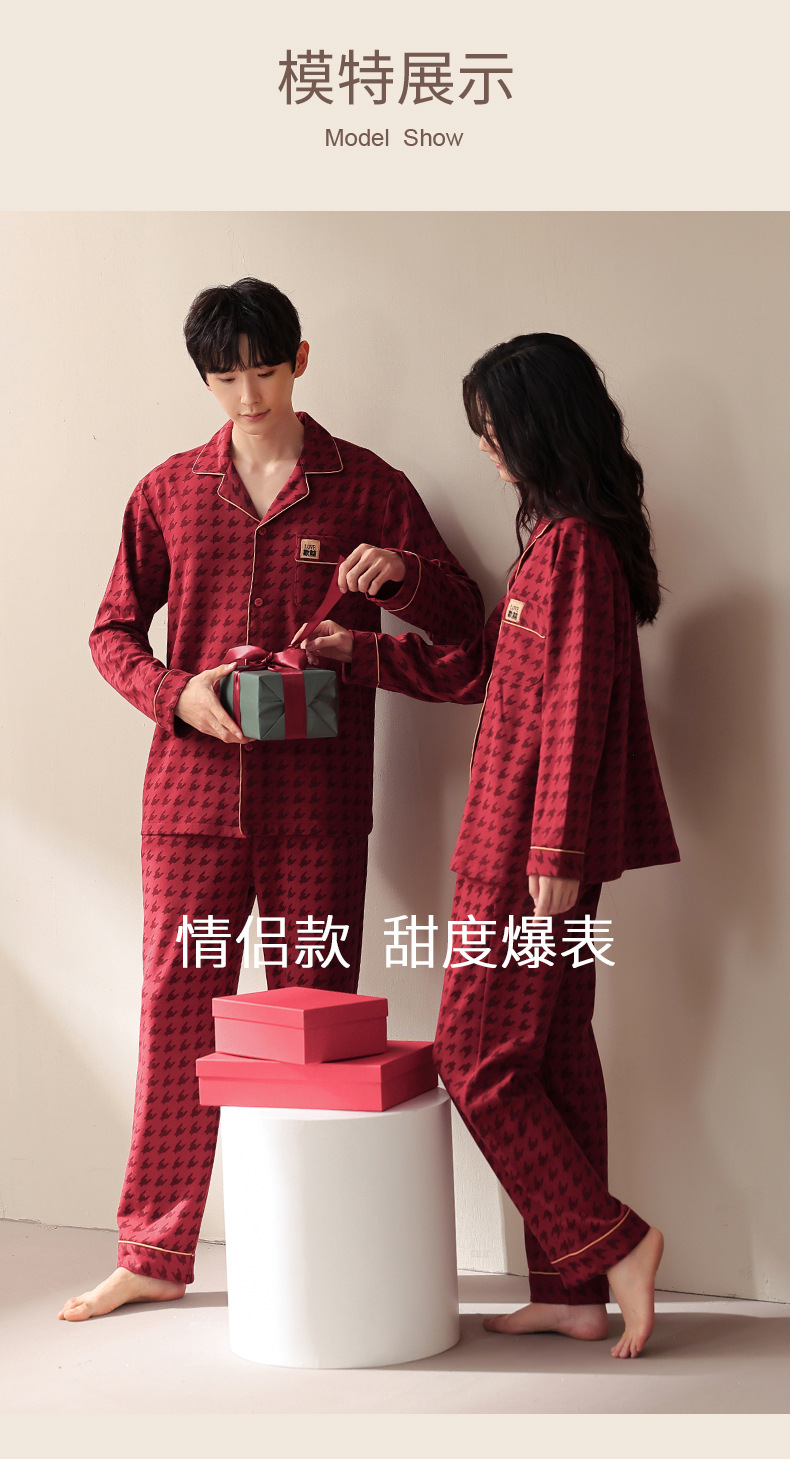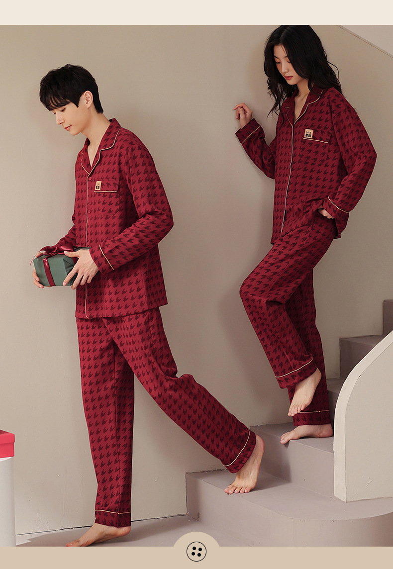 웨딩 커플 잠옷 여성의 봄과 가을면 긴팔 카디건 레드 축제 해 남자 홈 의류 세트스토어 가기