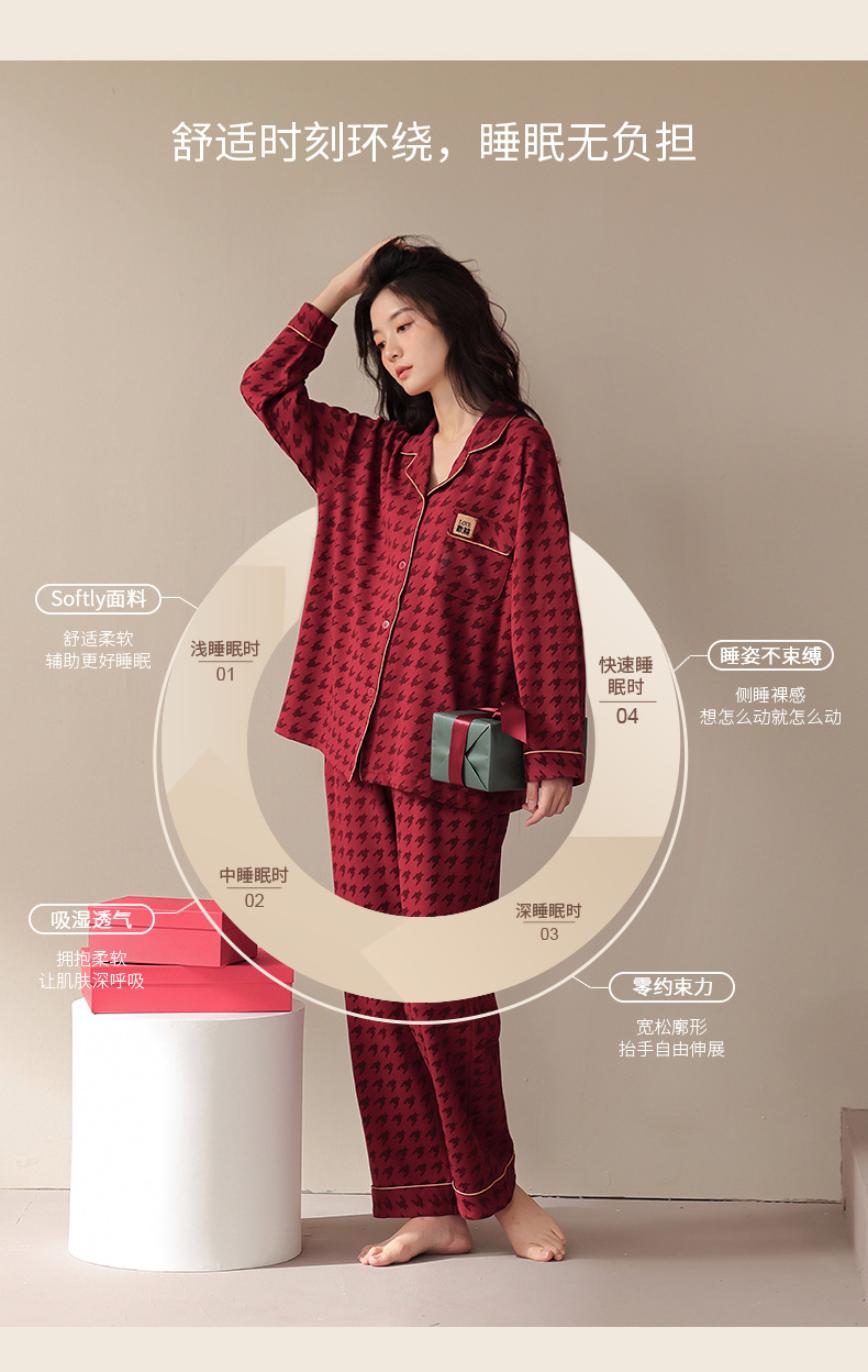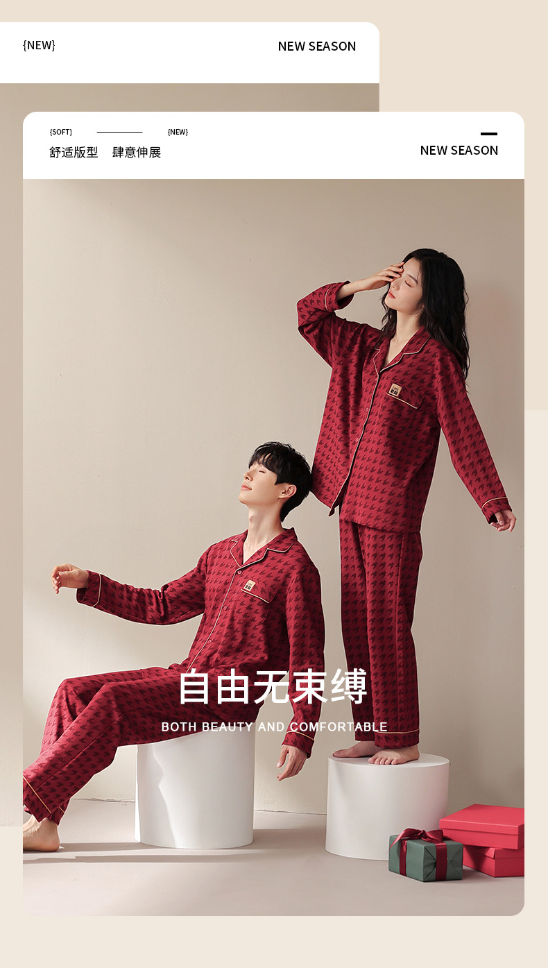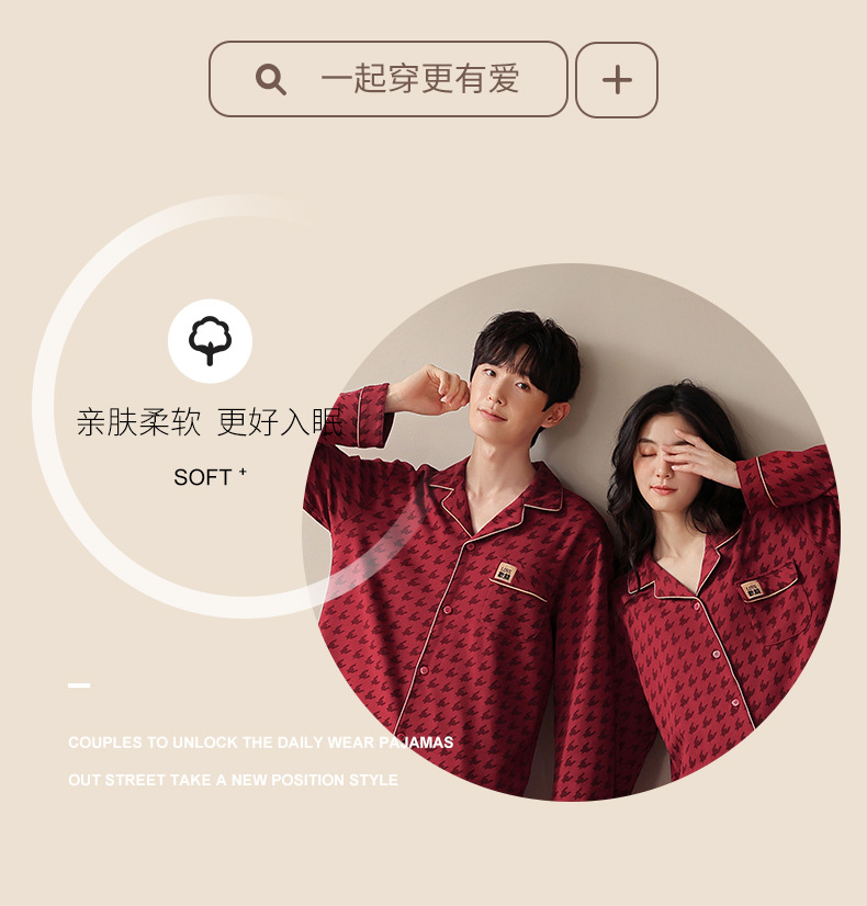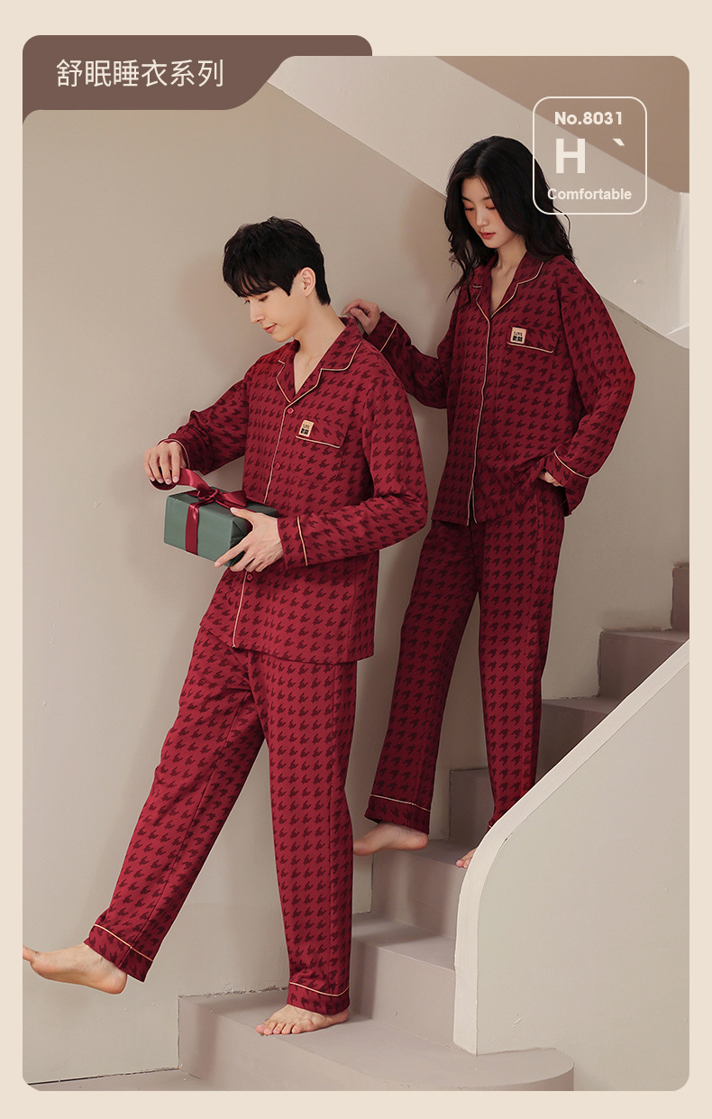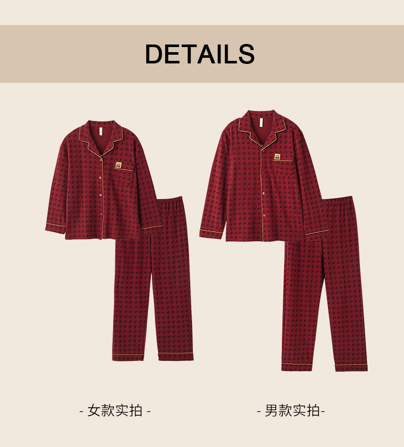 웨딩 커플 잠옷 여성의 봄과 가을면 긴팔 카디건 레드 축제 해 남자 홈 의류 세트스토어 가기