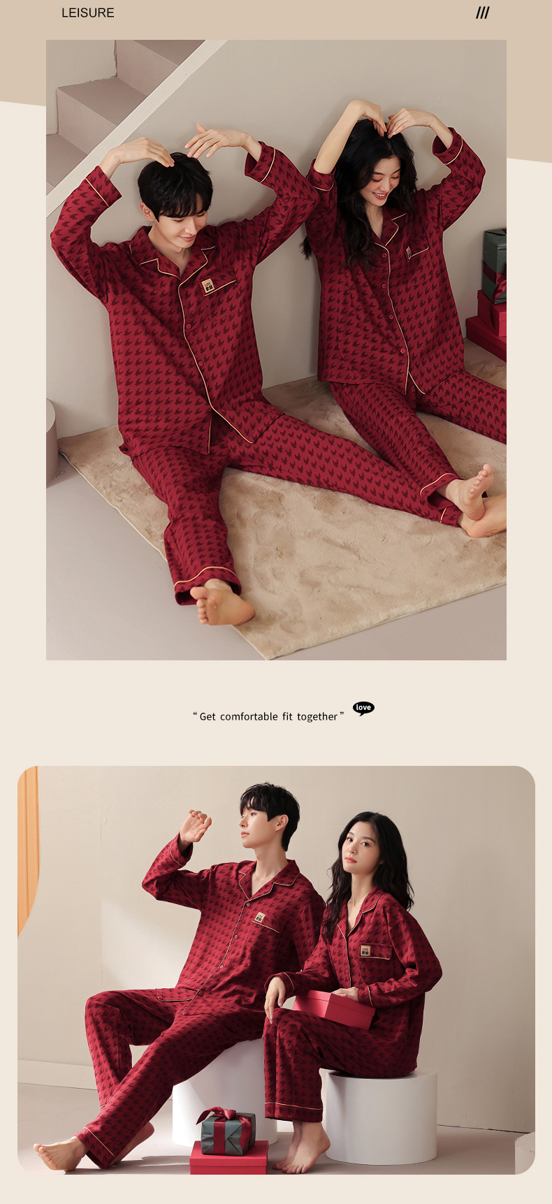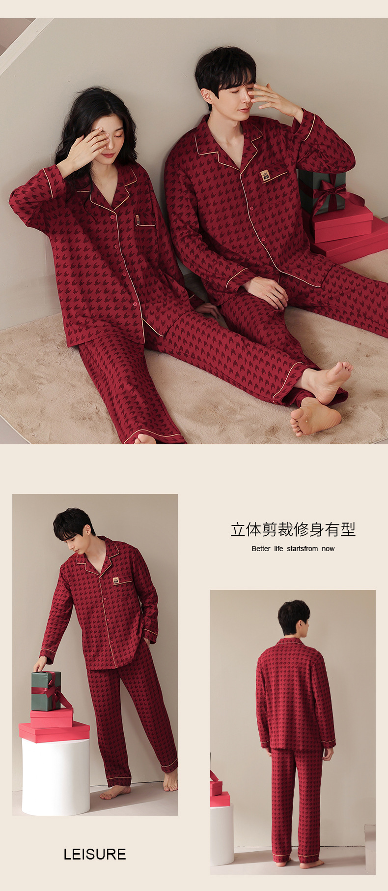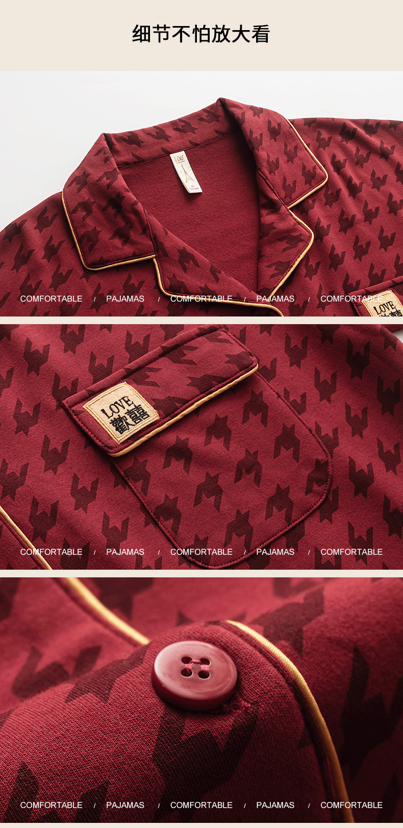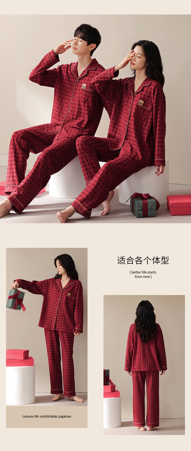웨딩 커플 잠옷 여성의 봄과 가을면 긴팔 카디건 레드 축제 해 남자 홈 의류 세트스토어 가기