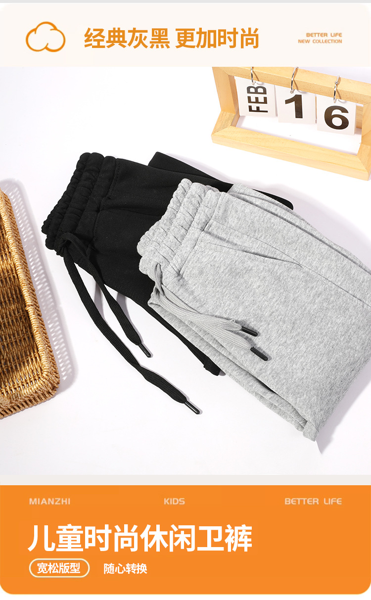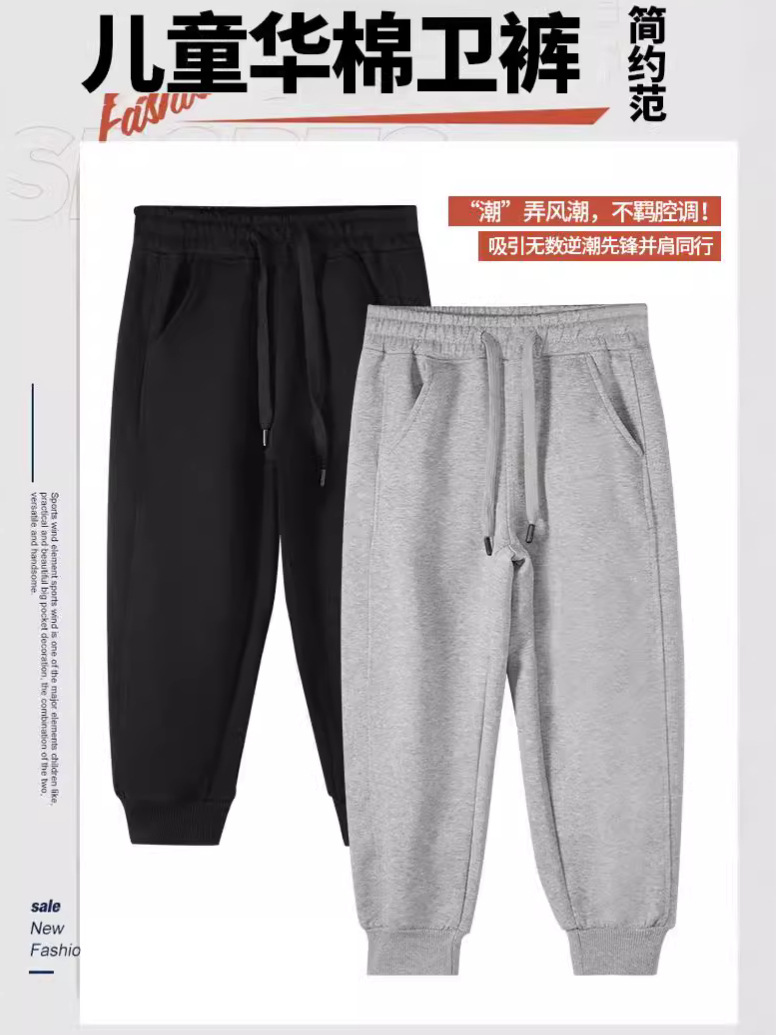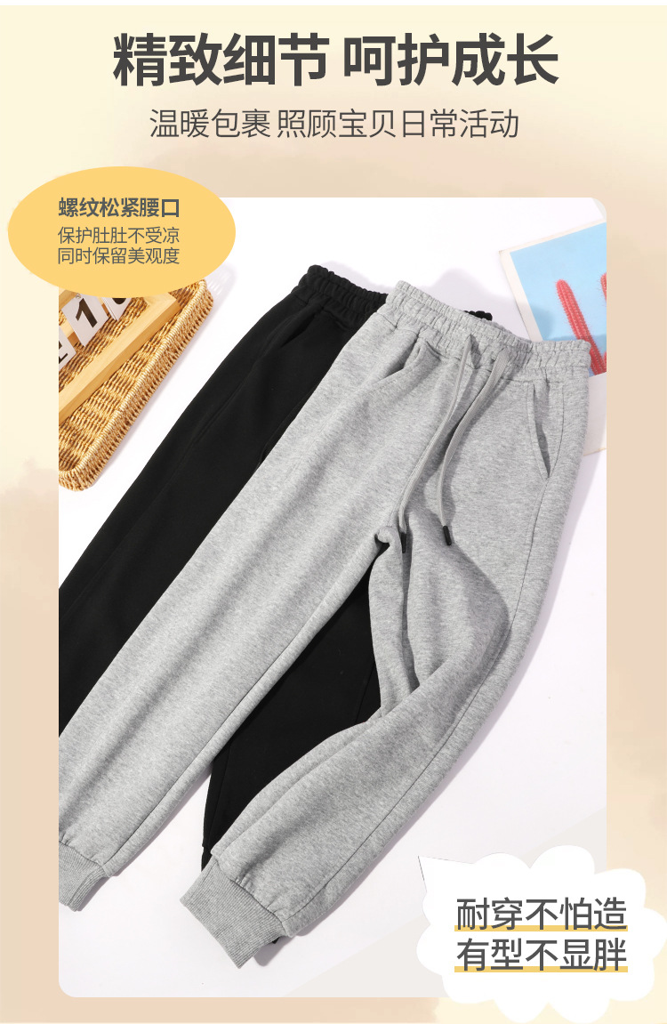 Hua Mian 어린이 캐주얼 바지 남자와 여자 바지 슬링 스웨터 바지 큰 어린이 따뜻한 느슨한 발목 바지