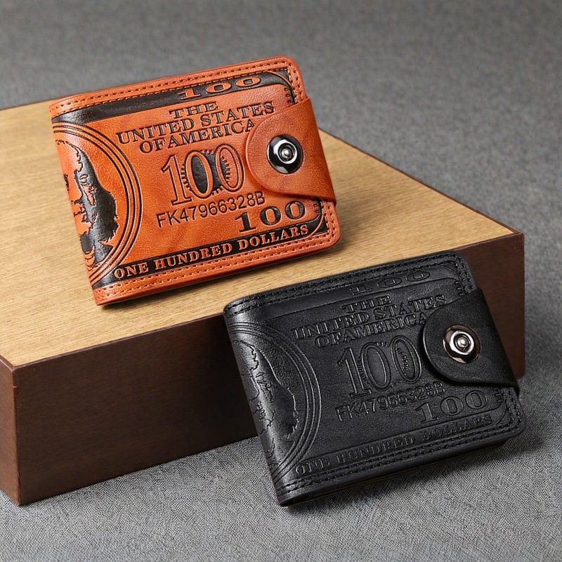 남성용 짧은 지갑, 유럽 및 미국 트렌디 브랜드, 개성 있는 돈지갑, 남성용 80% off 버클 다중 카드 슬롯 가죽 지갑