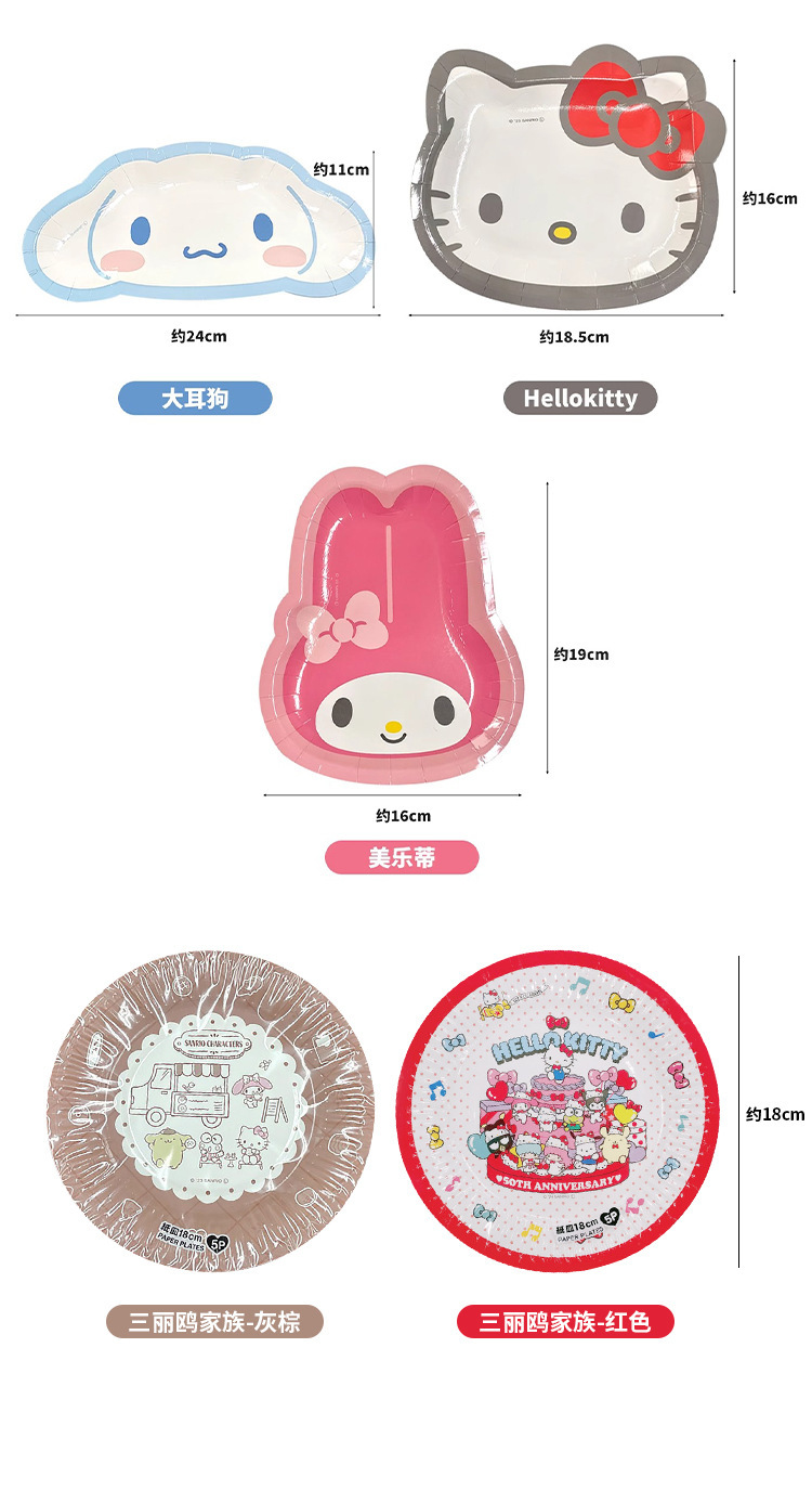 일본 수입 과일 산리오 플레이트 케이크 플레이트 생일 파티 일회용 식품 등급 종이 접시 식기