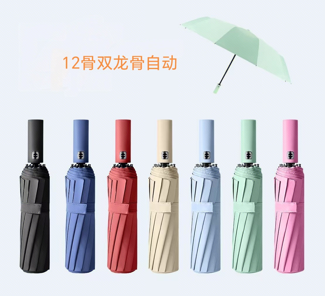 24 뼈 더블 드래곤 뼈 증가 자동 우산 맞춤형 3 배 우산 블랙 접착제 UV 보호 맑고 비 이중 목적 광고 우산스토어 가기