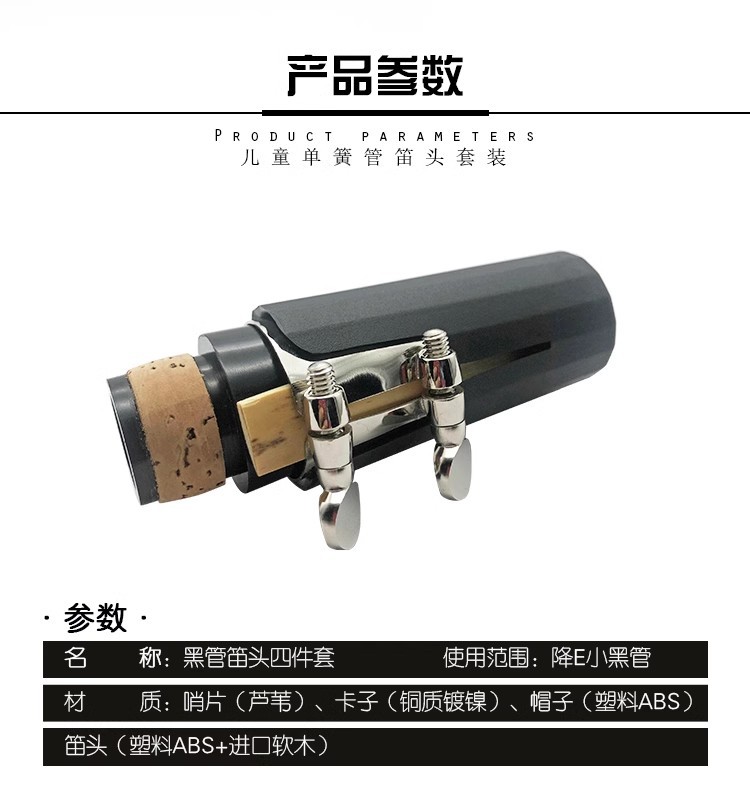 다운 E 톤 어린이 클라리넷 플루트 헤드 세트 작은 3 개의 블랙 파이프 클립 캡 캡 캡 호루라기 마우스 피스 4 피스 세트
