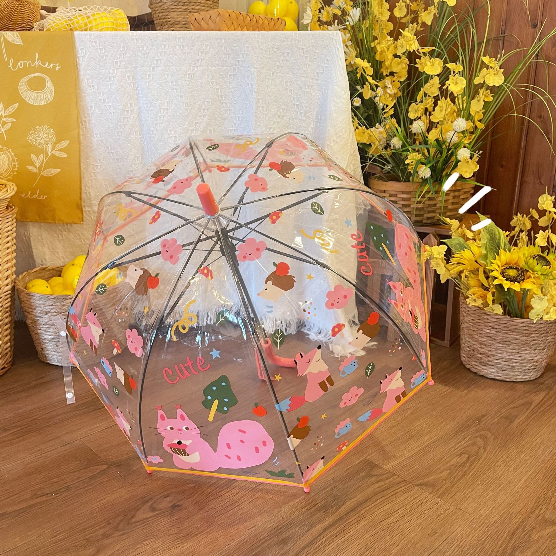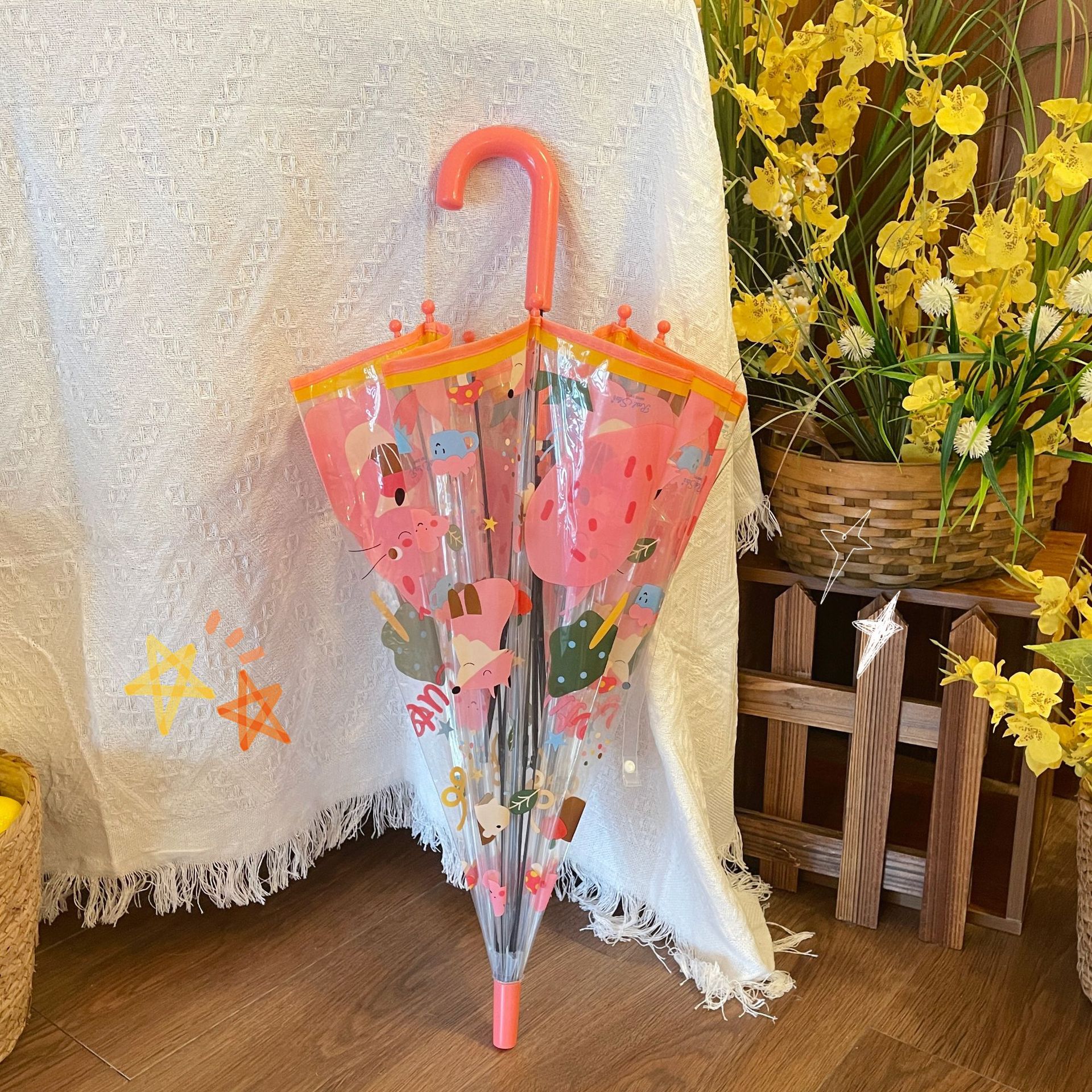 재고 인터넷 축하 소녀 유치원 초등학교 어린이 우산 귀여운 두꺼운 손 오픈 긴 손잡이 우산 아기 투명 우산