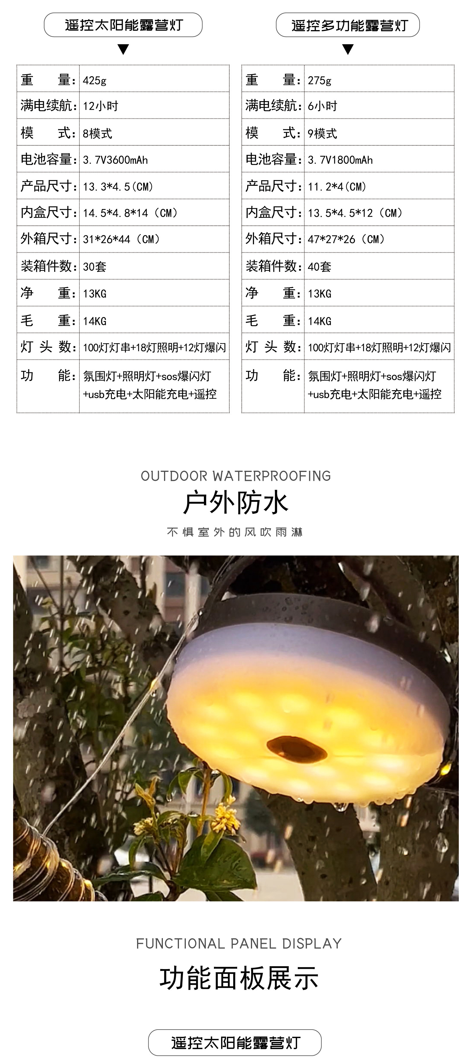 국경 간 태양 LED 캠핑 램프 야외 텐트 램프 문자열 분위기 램프 조명 램프 테이프 저장 캠핑 램프
