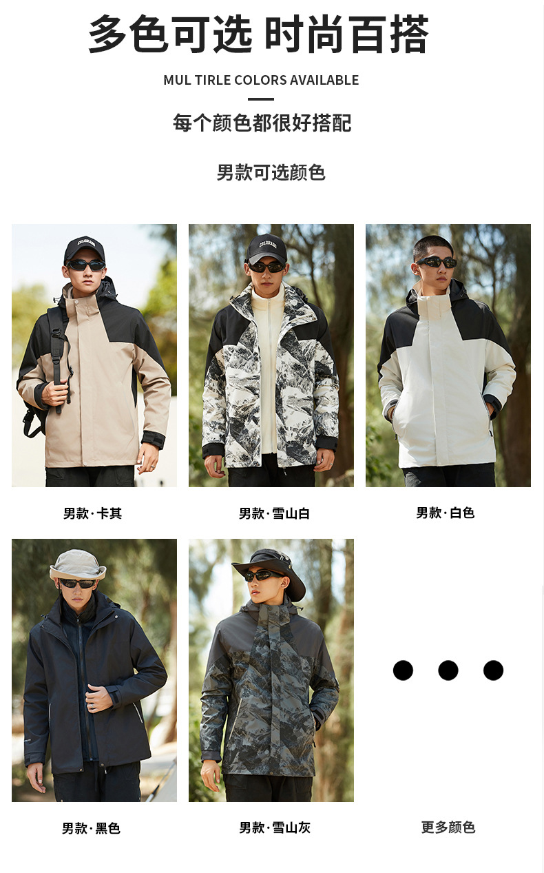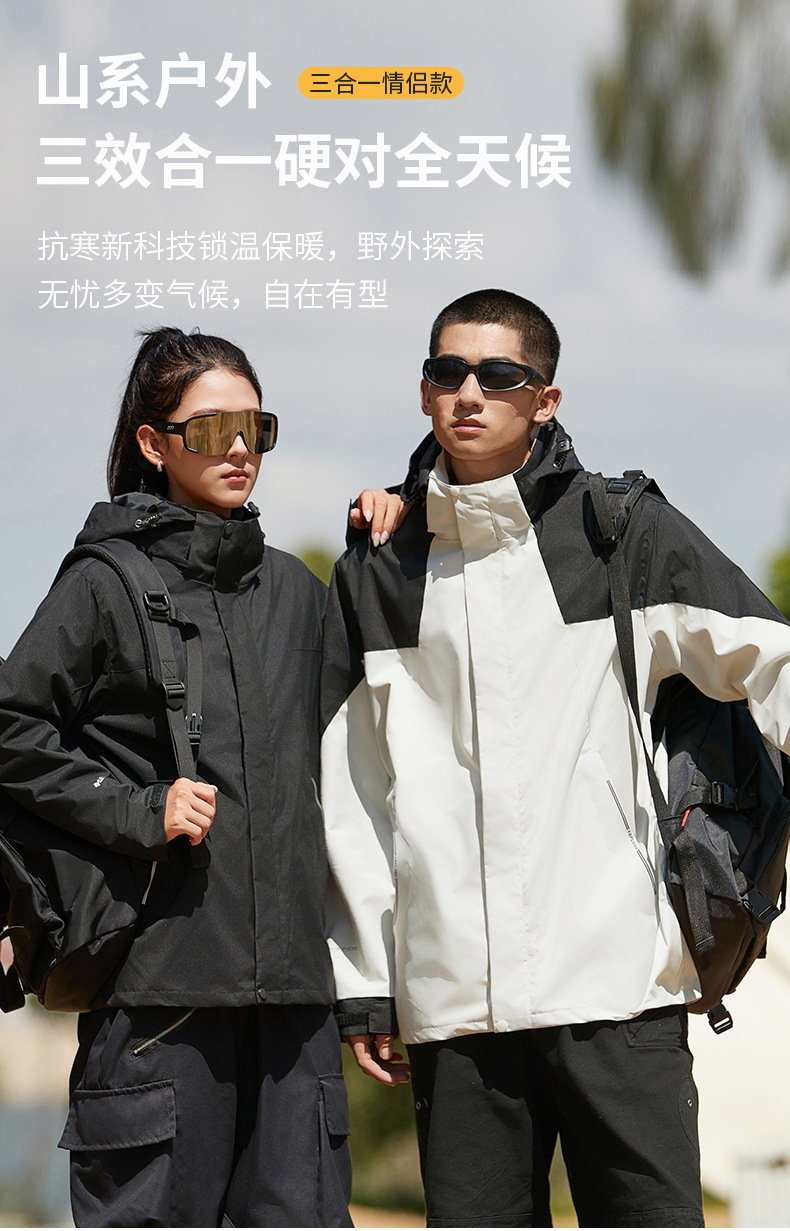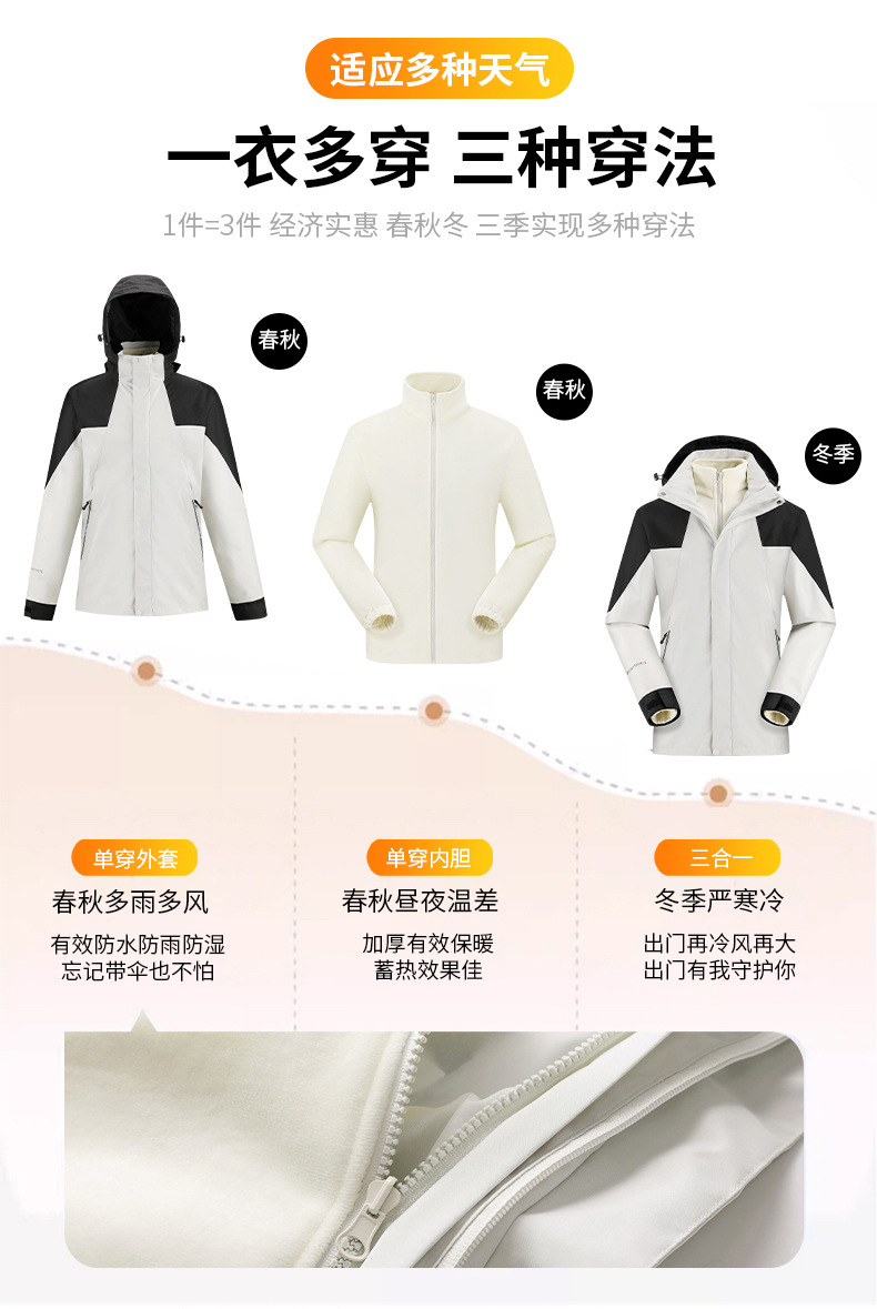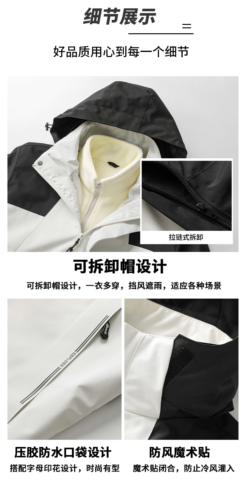 탈부착 가능한 남녀공용 삼합일 등산복, 방풍 방수 재킷, 유명 브랜드와 동일한 스타일의 재킷, 대량 인쇄 가능스토어 가기