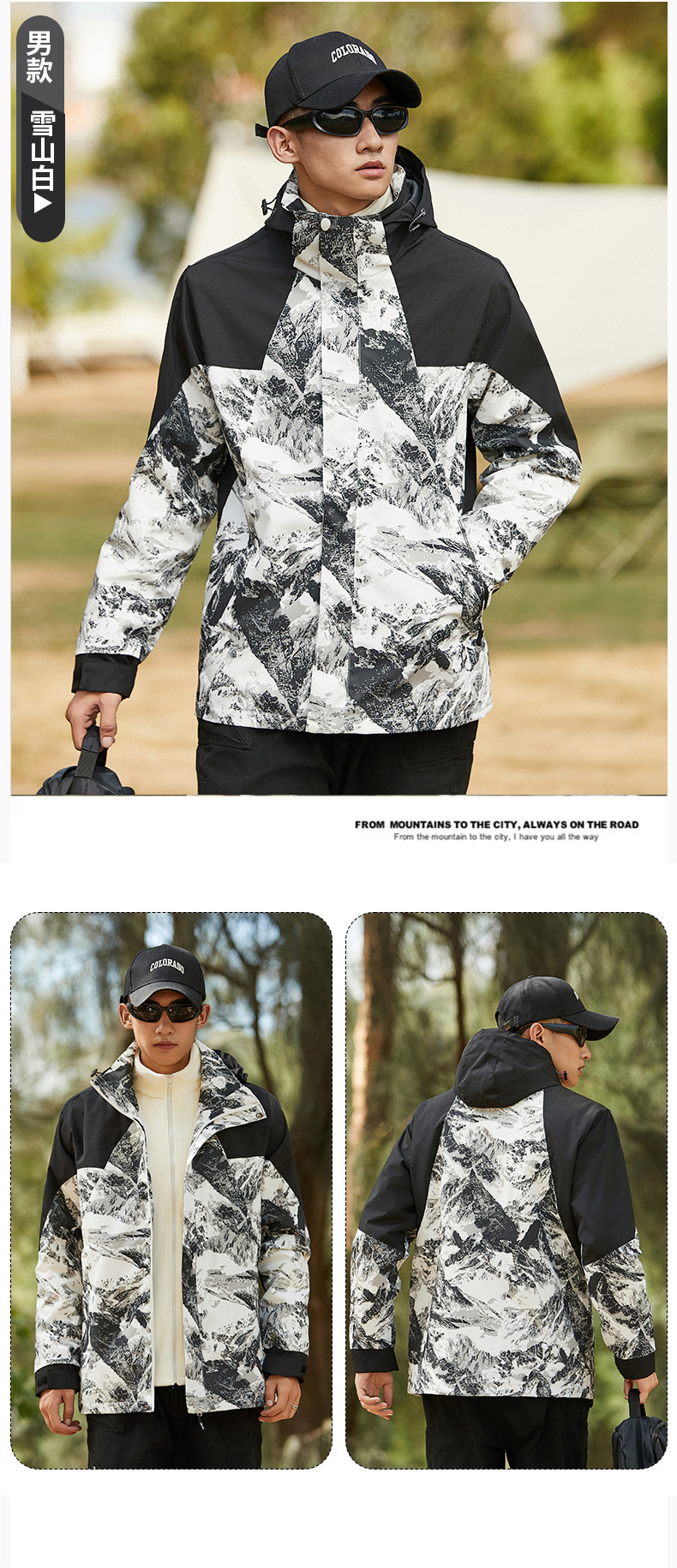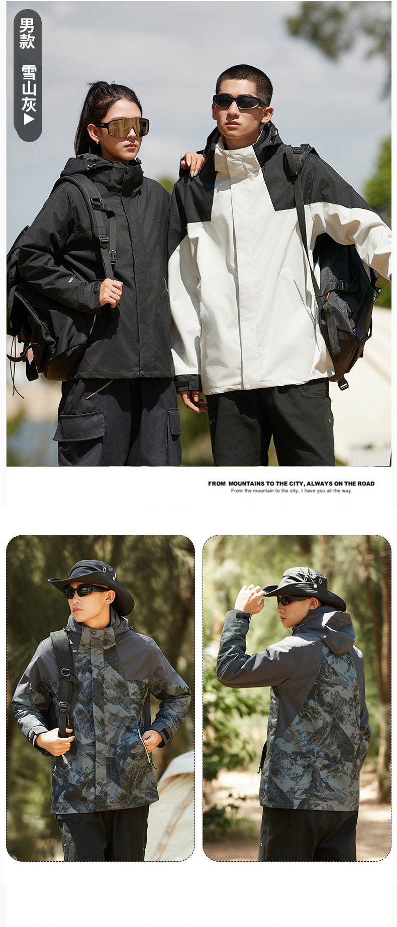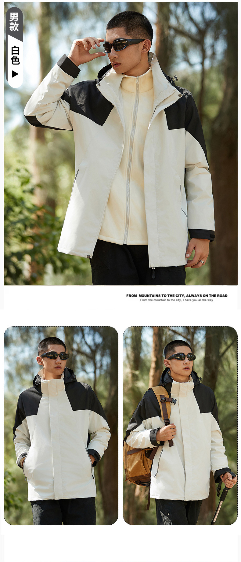 탈부착 가능한 남녀공용 삼합일 등산복, 방풍 방수 재킷, 유명 브랜드와 동일한 스타일의 재킷, 대량 인쇄 가능스토어 가기