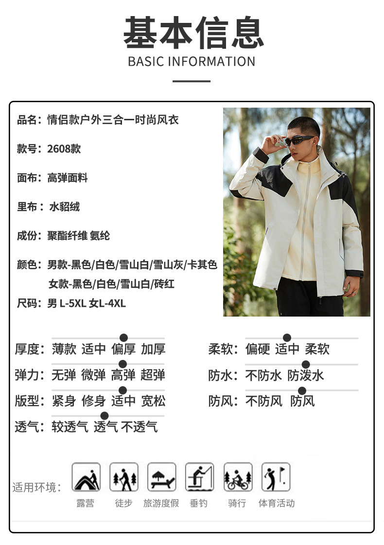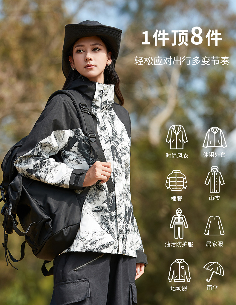 탈부착 가능한 남녀공용 삼합일 등산복, 방풍 방수 재킷, 유명 브랜드와 동일한 스타일의 재킷, 대량 인쇄 가능