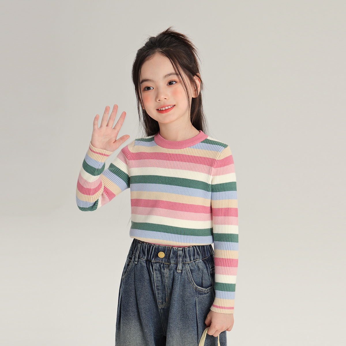 푸딩하루 여아 니트 스웨터 베이스레이어 2024 가을 신상 여아 베이스레이어 스웨터 부드럽고 편안함