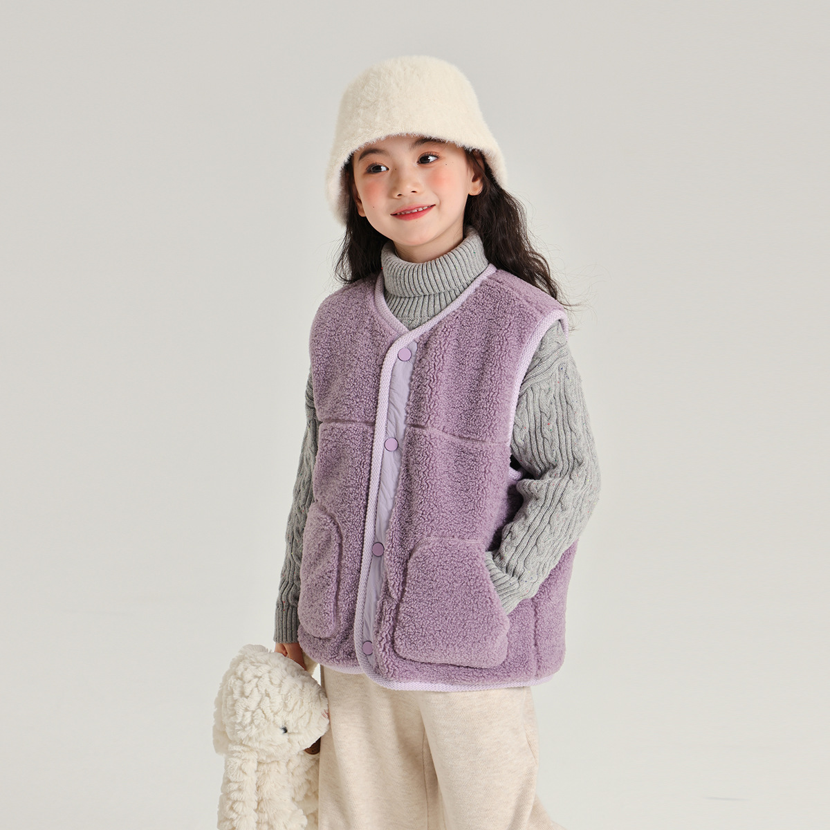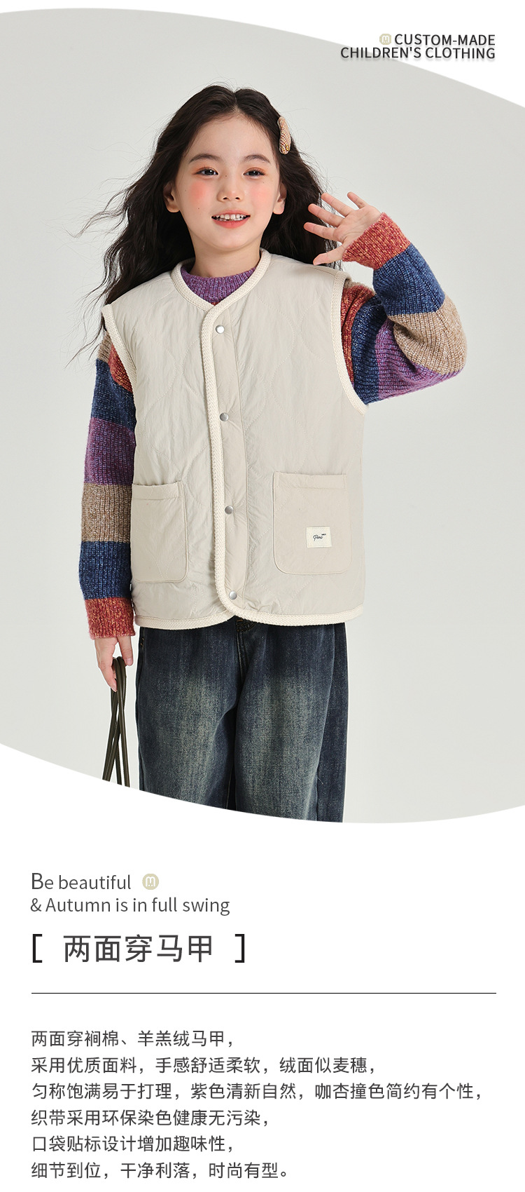 푸딩하루 가을 신상 양면 착용 가능한 양털 조끼 2024 가을 신상 여아용 따뜻하고 편안함