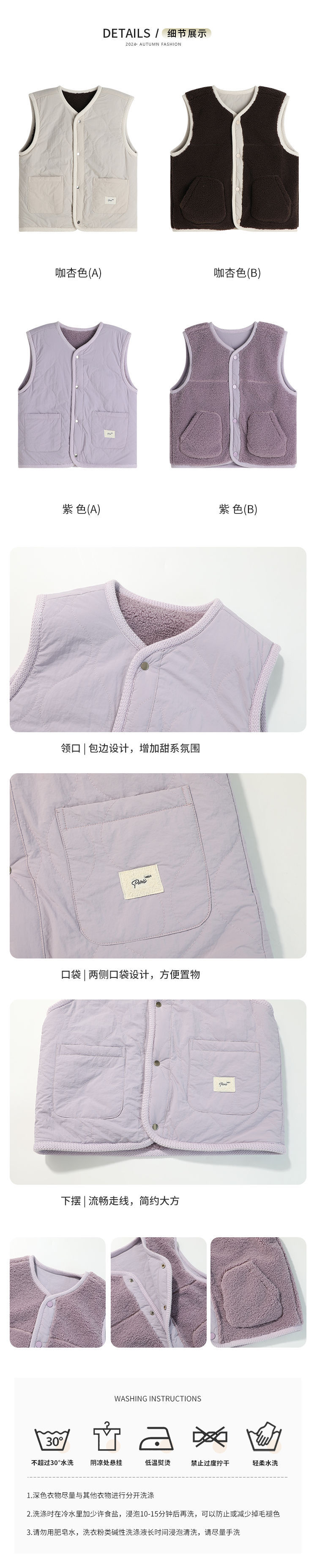 푸딩하루 가을 신상 양면 착용 가능한 양털 조끼 2024 가을 신상 여아용 따뜻하고 편안함스토어 가기