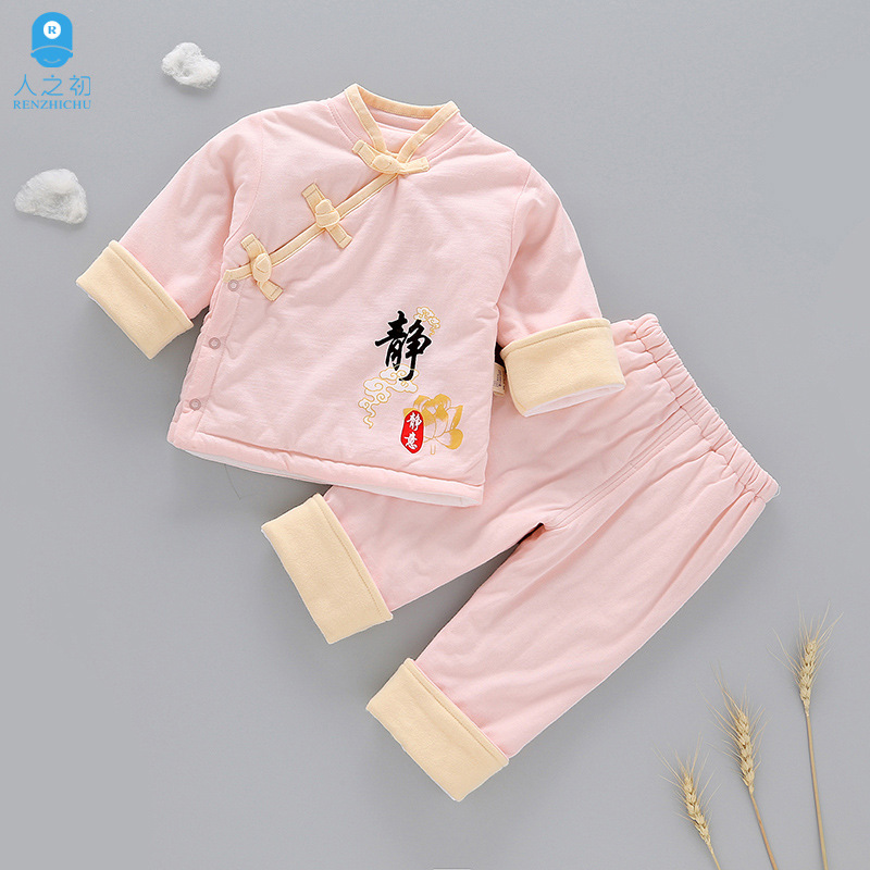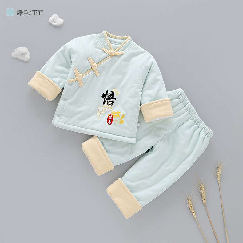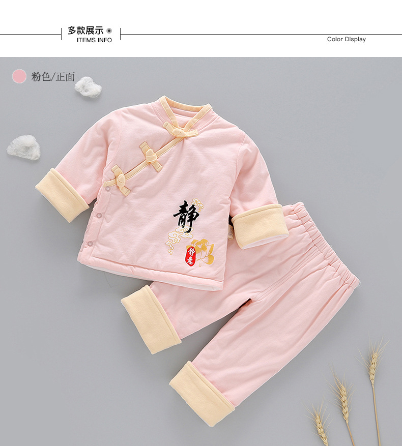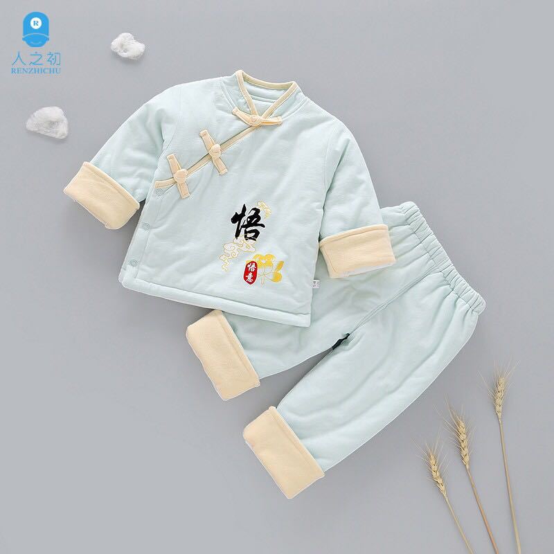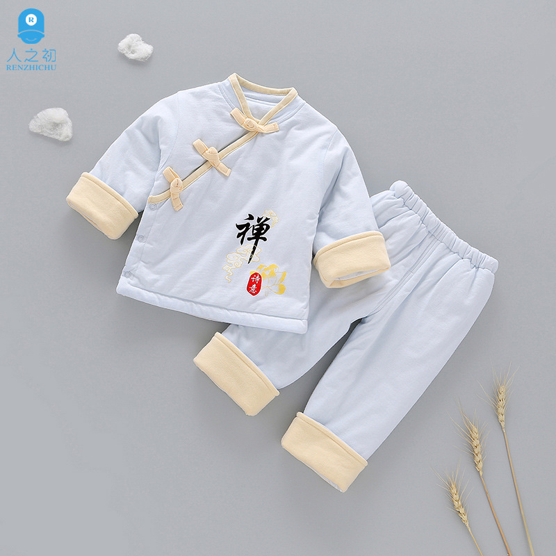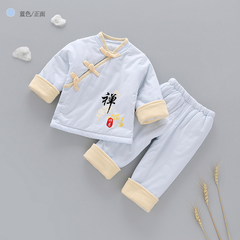 초기 중국 스타일 어린이 의류 어린이 탕 세트 세트 아기의 고대 의상 한푸 가을 겨울 의류 소년의 얇은 코튼 자켓