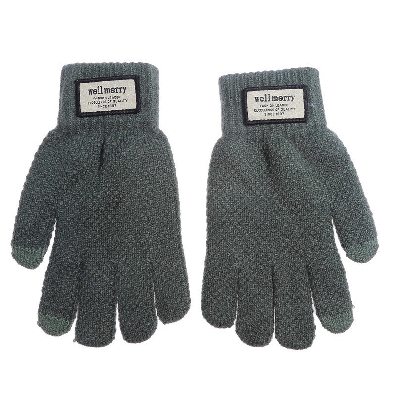 남성용 장갑 겨울 학생 냉장 따뜻한 한국식 귀여운 5 손가락 터치 스크린 울 장갑 두꺼운 잘 생긴 사이클링 장갑