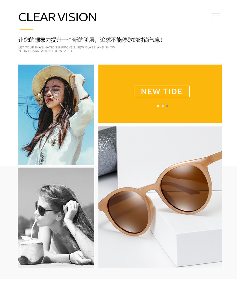 새로운 한국어 버전의 선글라스 조수 작은 얼굴 스타 거리 샷 큰 프레임 라운드 프레임 선글라스 안티 자외선 도매