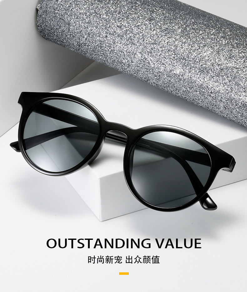 새로운 한국어 버전의 선글라스 조수 작은 얼굴 스타 거리 샷 큰 프레임 라운드 프레임 선글라스 안티 자외선 도매스토어 가기
