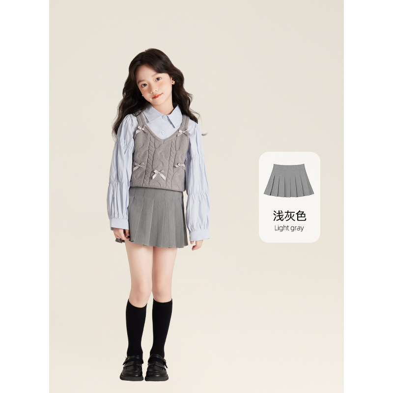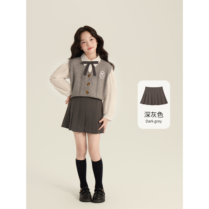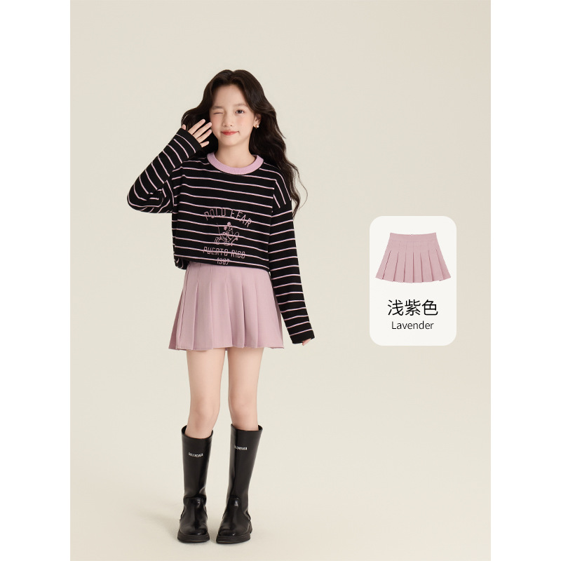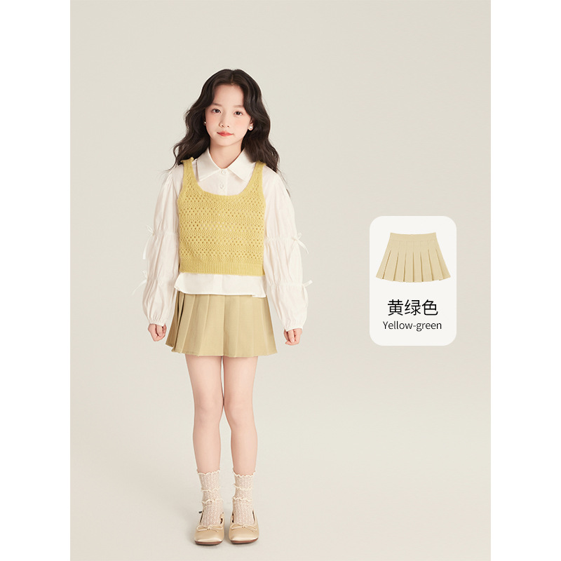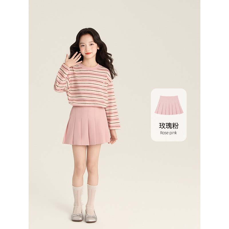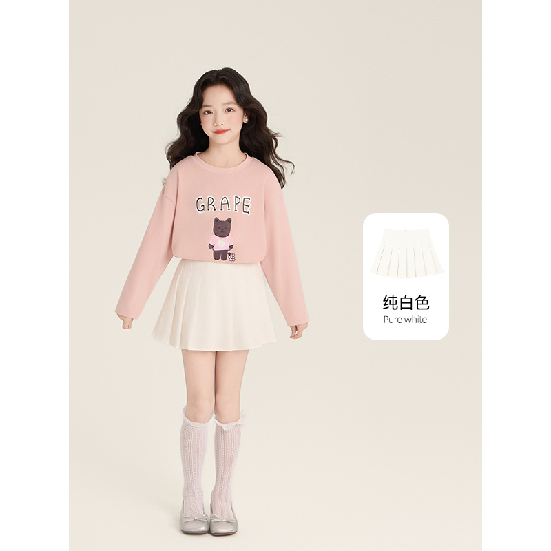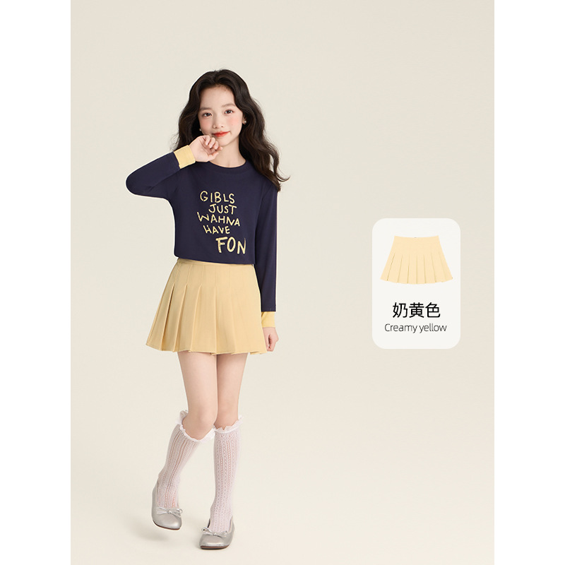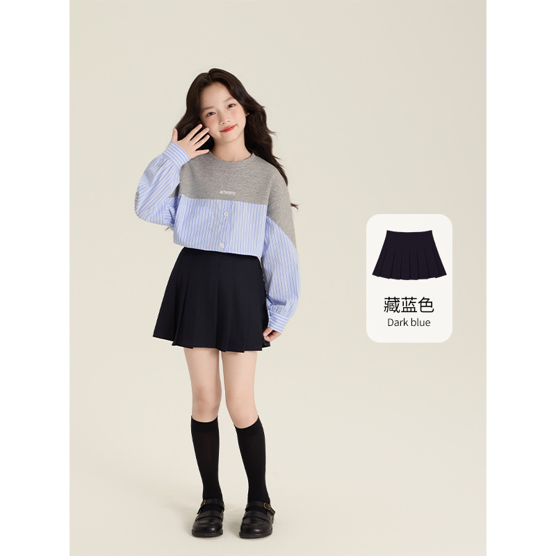 Amybaby 여아 스커트 2026 봄 여름 신상품 단색 심플 다용도 하프 스커트 A라인 스커트 플리츠 스커트스토어 가기