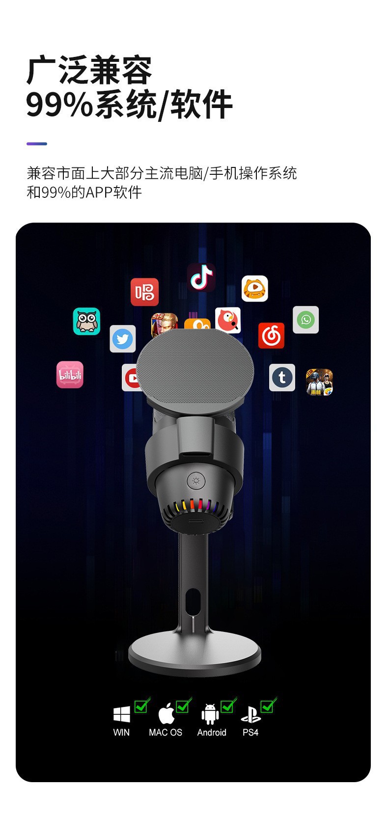 새로운 M9 컴퓨터 휴대 전화 게임 경쟁 RGB 콘덴서 마이크 라이브 녹음 노래방 컴퓨터 녹음 마이크