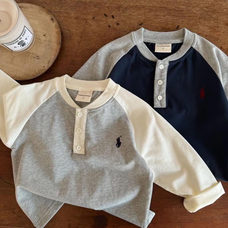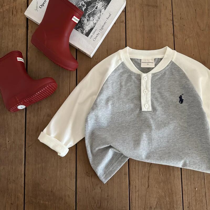 한국 리틀 한국 어린이 티셔츠 봄 새 소년 컬러 매칭 긴소매 베이스 셔츠 아기의 일본 패션 브랜드 폴로 셔츠스토어 가기