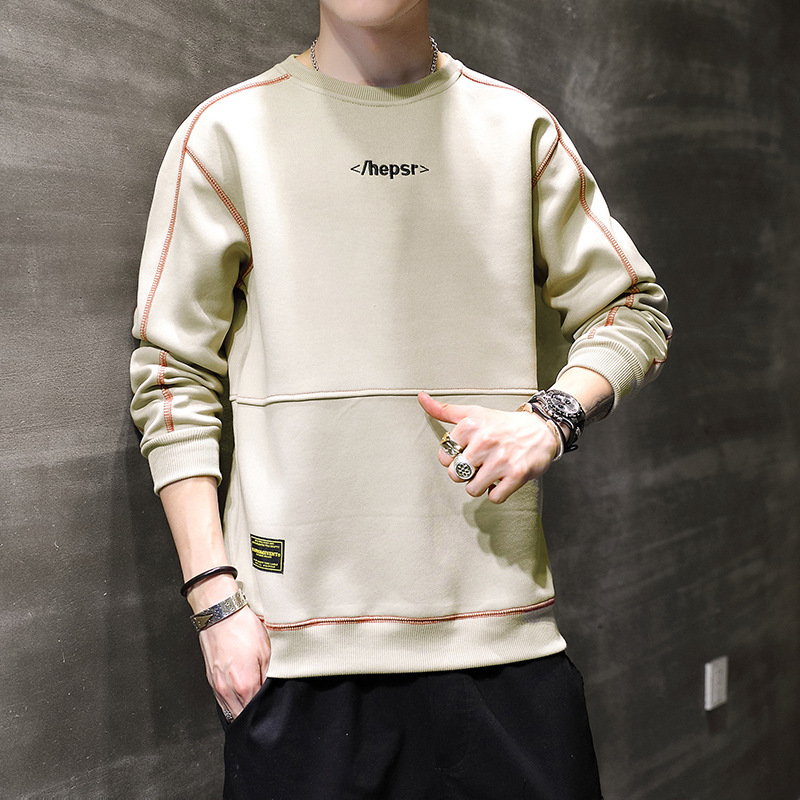 라운드넥 스웨트셔츠 남성용 2025 신상 루즈핏 봄가을 트렌디 만능 긴팔 티셔츠 남성용 이너웨어 가을스토어 가기