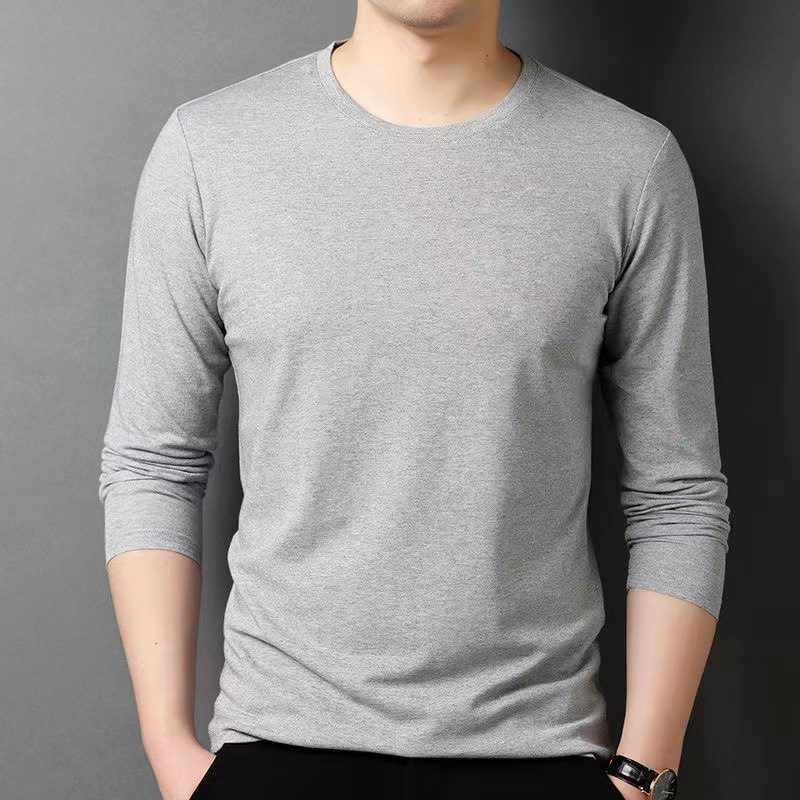 2024 제조 업체 도매 가을 새로운 남성 패션 캐주얼 긴 소매 크루 넥 바닥 셔츠 단색 느슨한 티셔츠 남성스토어 가기