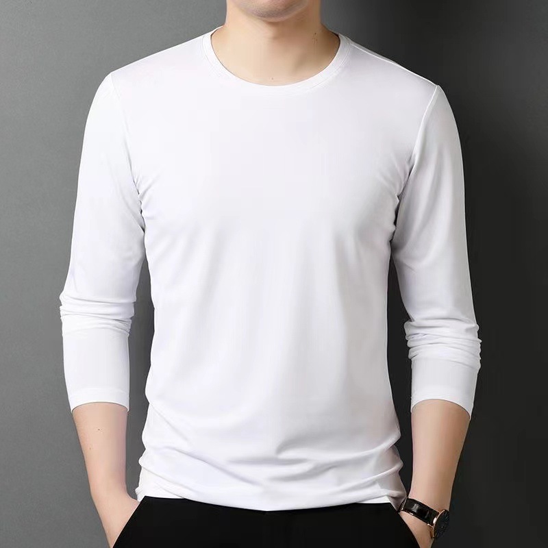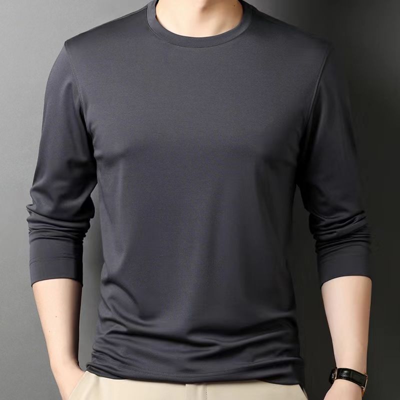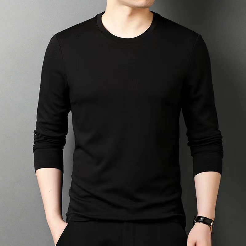2024 제조 업체 도매 가을 새로운 남성 패션 캐주얼 긴 소매 크루 넥 바닥 셔츠 단색 느슨한 티셔츠 남성