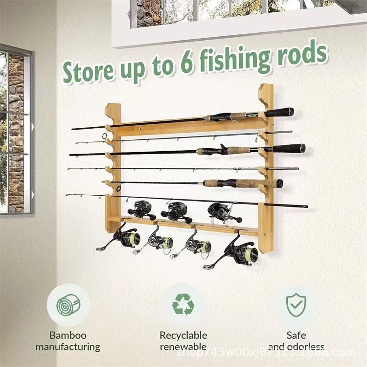 나무 다층 낚싯대 저장 랙 벽에 장착 된 벽 낚시 용품 디스플레이 랙 단단한 나무 낚싯대 보관 랙스토어 가기