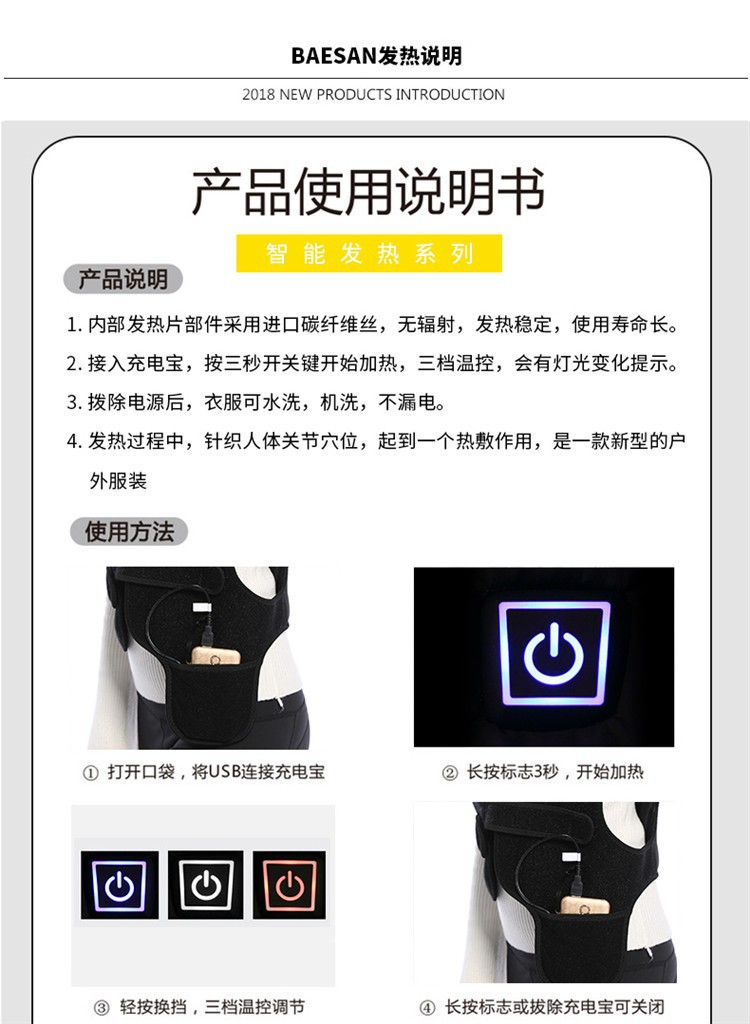 난방 조끼 난방 옷을 입고 남녀 프리 사이즈 국경 새로운 V 넥 난방 조끼 그래 핀 전기 난방 조끼