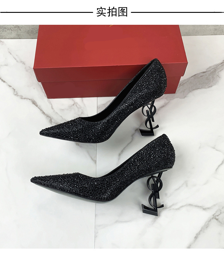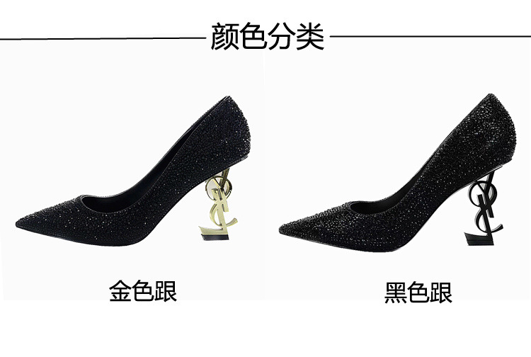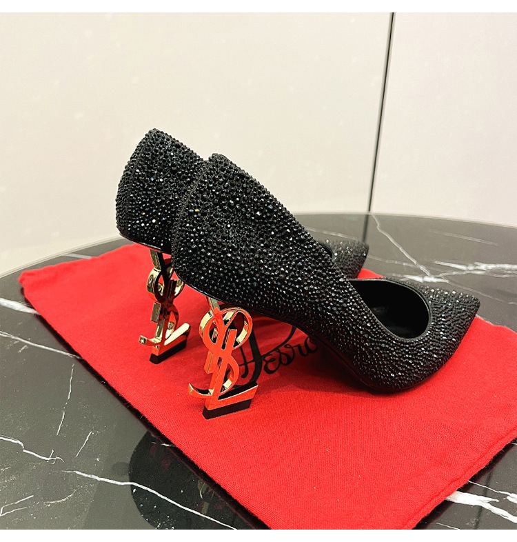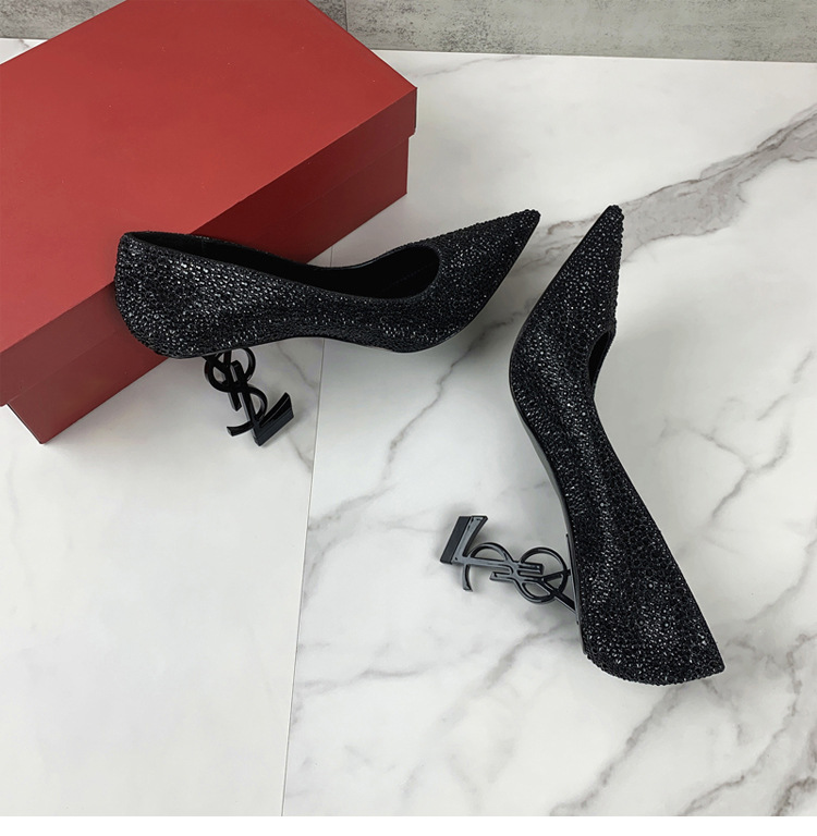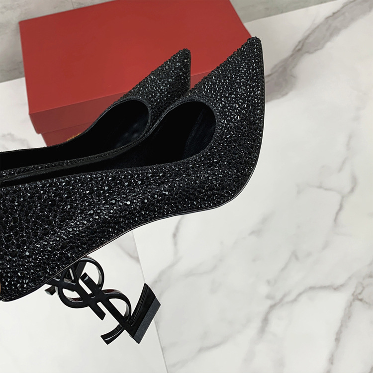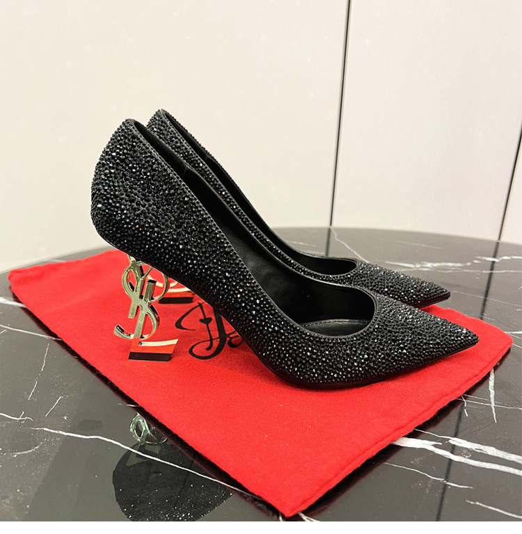 여성용 워터다이아몬드 라인스톤 고급 하이힐 2025 여름 가을 신상 패션 연회화 섹시하고 슬림한 뾰족코 패션 슈즈스토어 가기