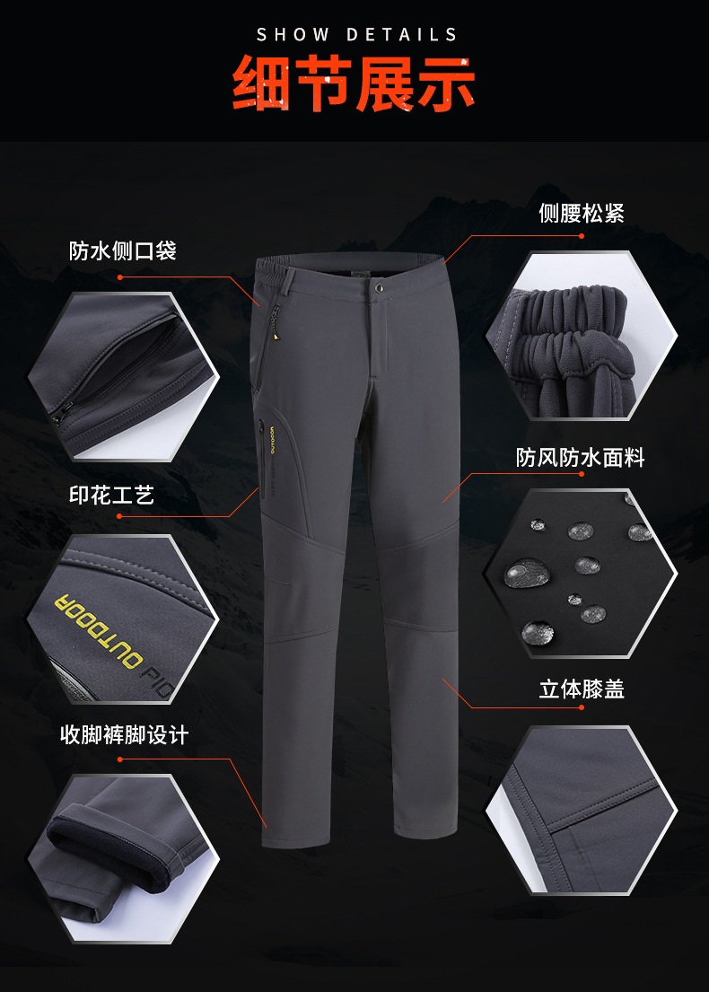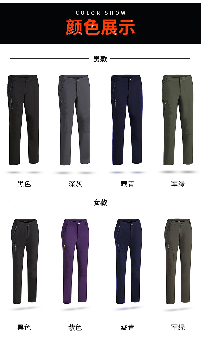 야외 러시 바지 남성용 겨울 양털 바지 부드러운 쉘 바지 기모 두꺼운 하이킹 바지 여성용 따뜻한 바지 방수 방풍 조수 브랜드스토어 가기