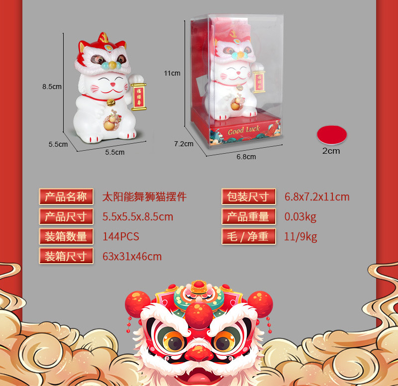 태양 사자 댄스 고양이 길조 중국 스타일 귀여운 국가 조수 사자 홈 자동차 장식 연례 회의 선물 국경스토어 가기