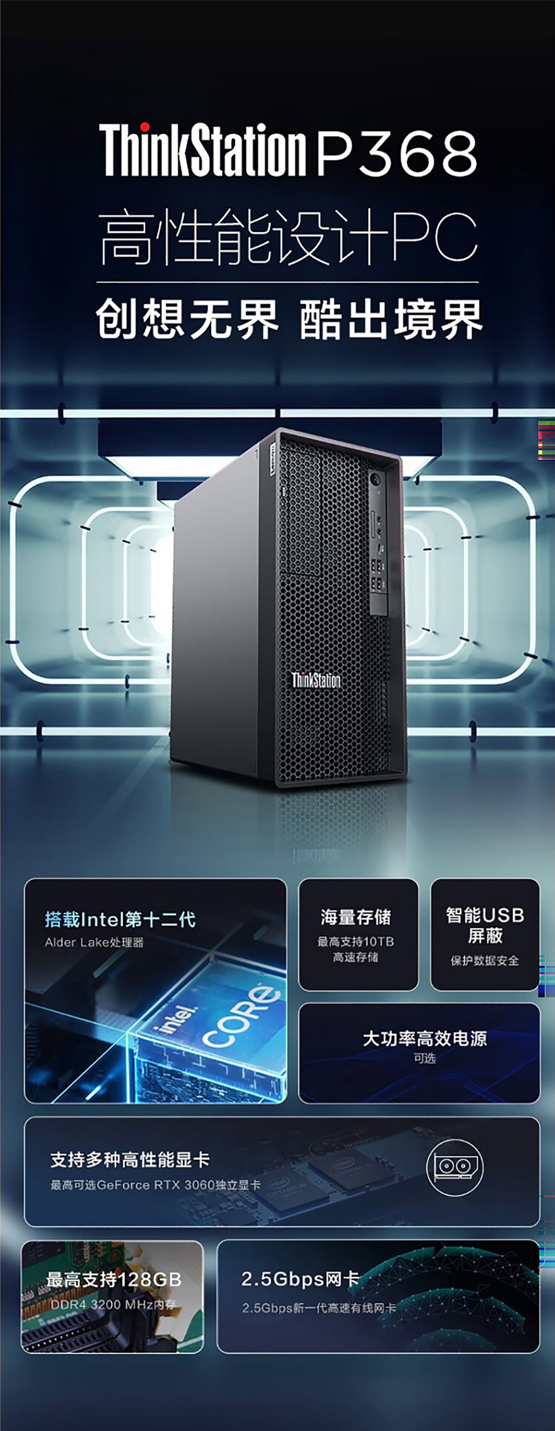 레노버 씽크 스테이션 P368 상업용 고성능 사무실 데스크톱/I5-12500/16G/1TB